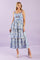 A printed woven midi dress featuring sweetheart neckline, straps, front bodice cut out, layered skirt and back zipper closure