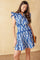 A printed woven mini dress featuring round neckline with V front, ruffled sleeve, ruffled hemline and smocked back waistband