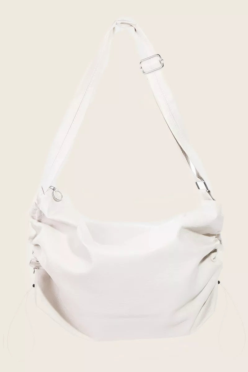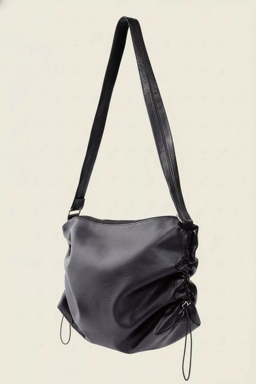 Make a fashion statement with this Ruched Detail Faux Leather Shoulder Bag, designed for style and practicality. The ruched detailing adds a touch of sophistication and texture to the bag, elevating its overall look. Crafted from faux leather, this shoulder bag offers a chic and cruelty-free option for your accessories collection. The shoulder strap provides comfort and convenience for everyday use, making it a versatile and functional accessory. Elevate your outfit with this trendy shoulder bag that combines fashion-forward design with everyday practicality.