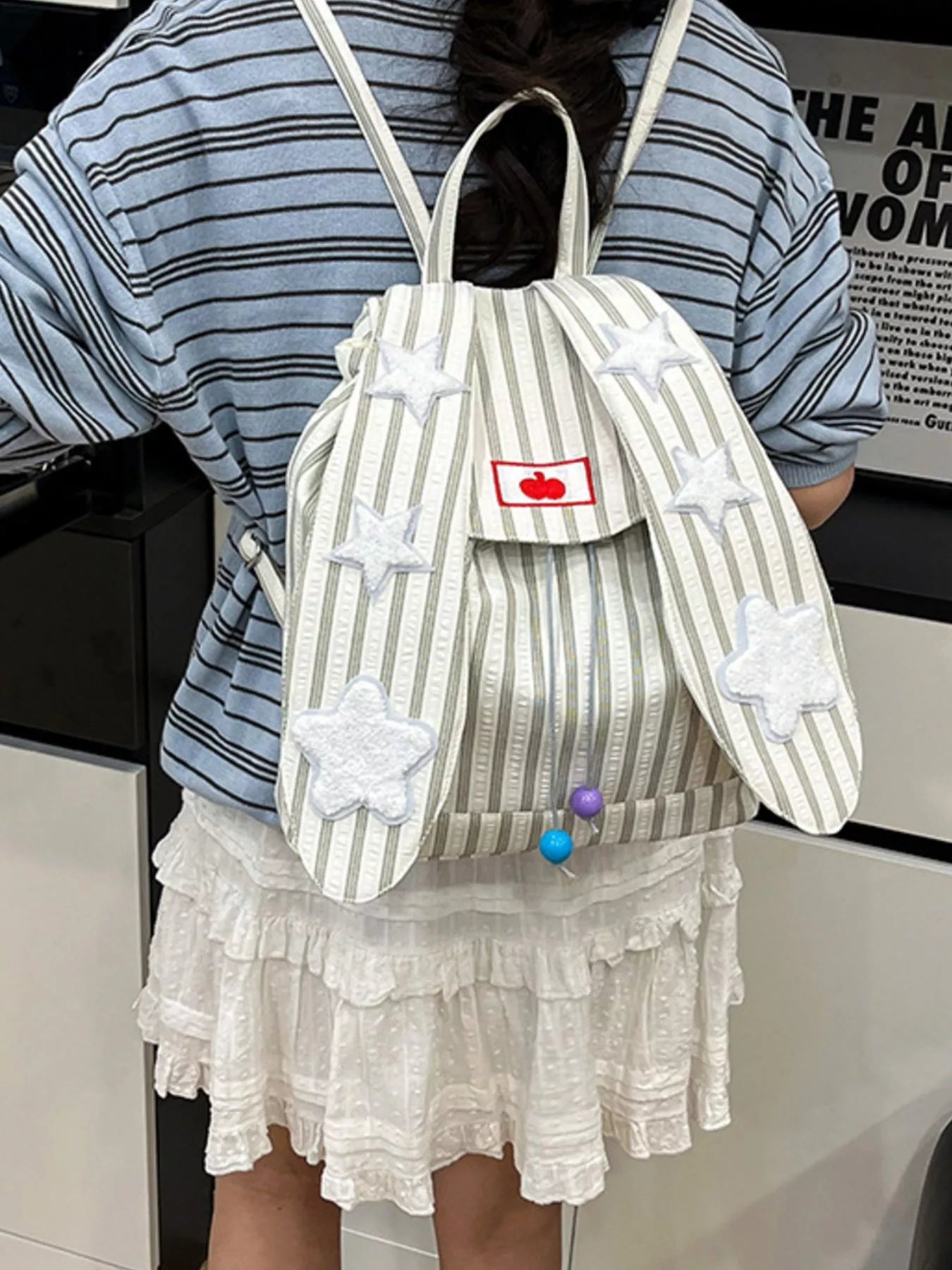 Striped Star Bunny Ear Backpack Bag