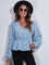 Floral V-Neck Balloon Sleeve Peplum Blouse