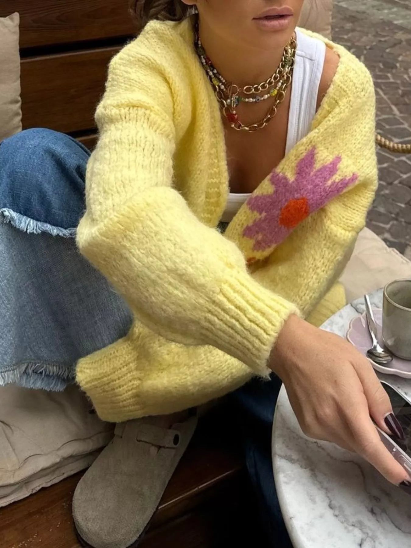 Lemon Button Up Knit Cardigan$49.99