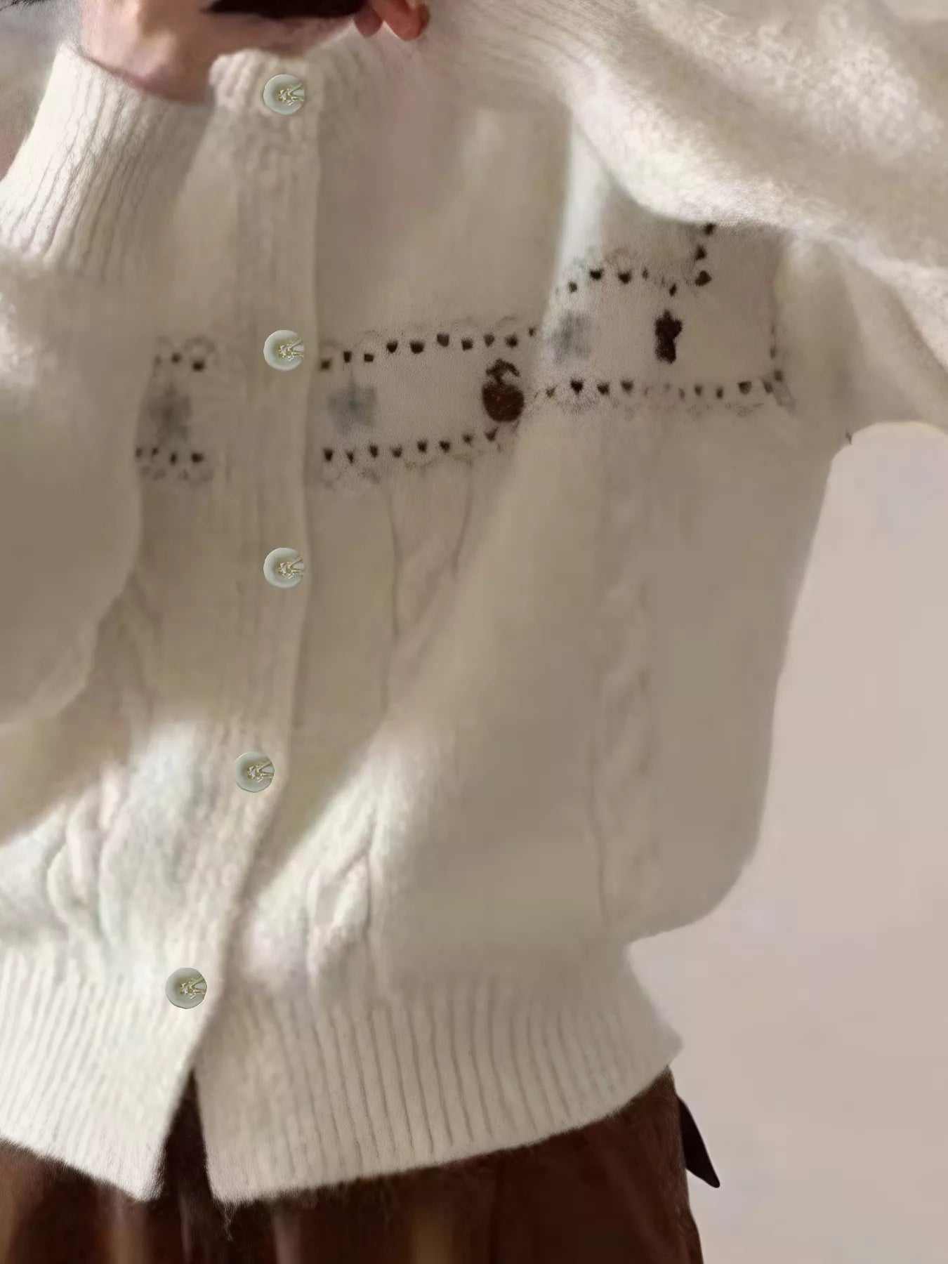 - Features:Cable-Knit,Ribbed,Buttoned,Embroidered