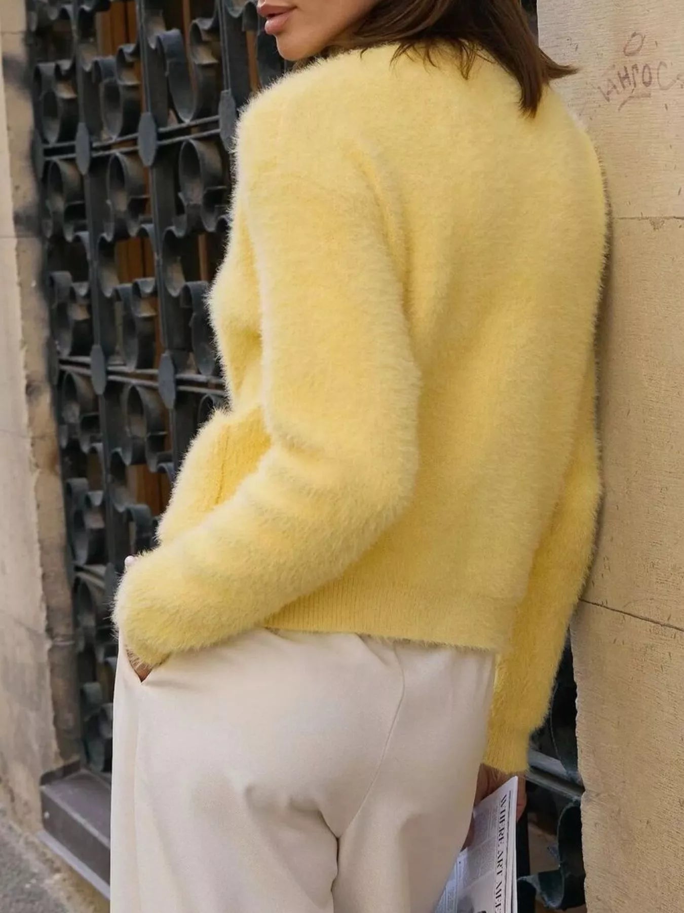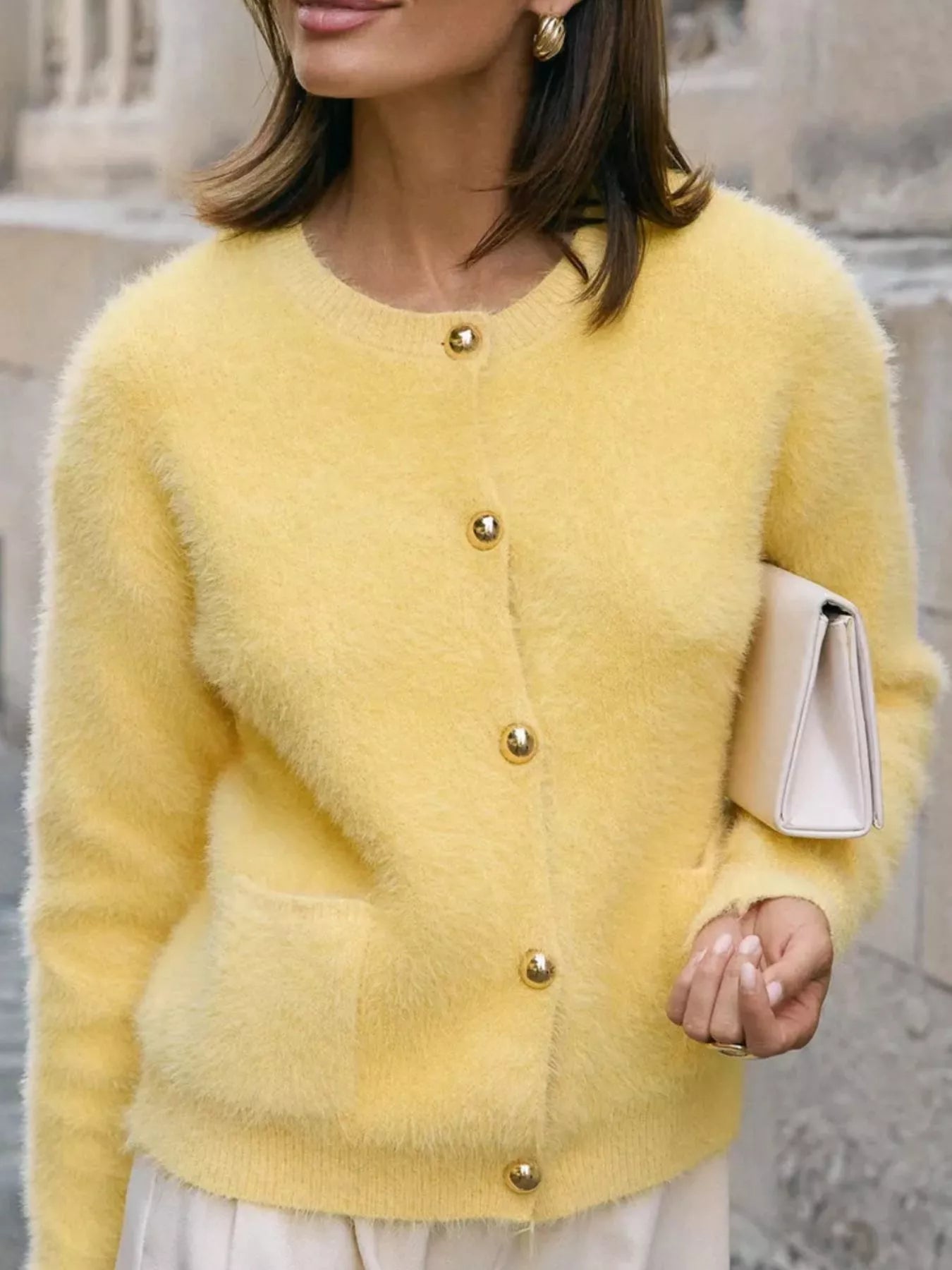 Fluffy Knit Button Up Cardigan