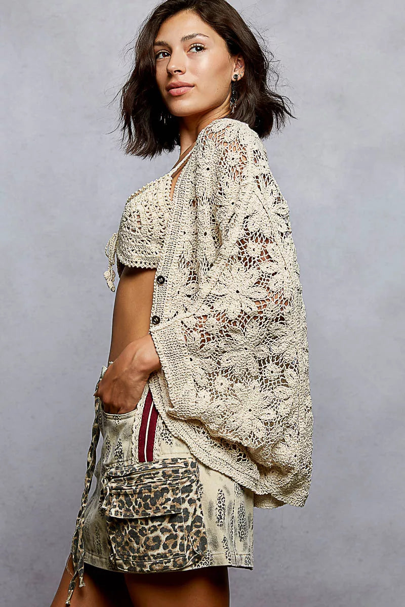 POL Crochet Knit Lightweight Cardigan