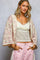 The three-quarter sleeve Regular-Fit Crochet Cardigan Top is a standout piece with its color-blocked granny square pattern that adds a bold and unique texture. The handmade feel of the crochet design gives it a special and artisanal touch. This cardigan is versatile for layering and perfect for adding a vibrant pop of color to your everyday outfits. Effortlessly stylish, this cardigan is a great choice for casual, yet chic styling. Elevate your wardrobe with this eye-catching and stylish crochet cardigan top!