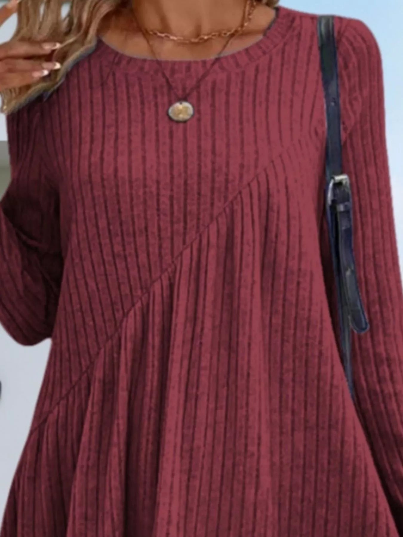 Casual Ribbed Knit Long Sleeve Swing Dress