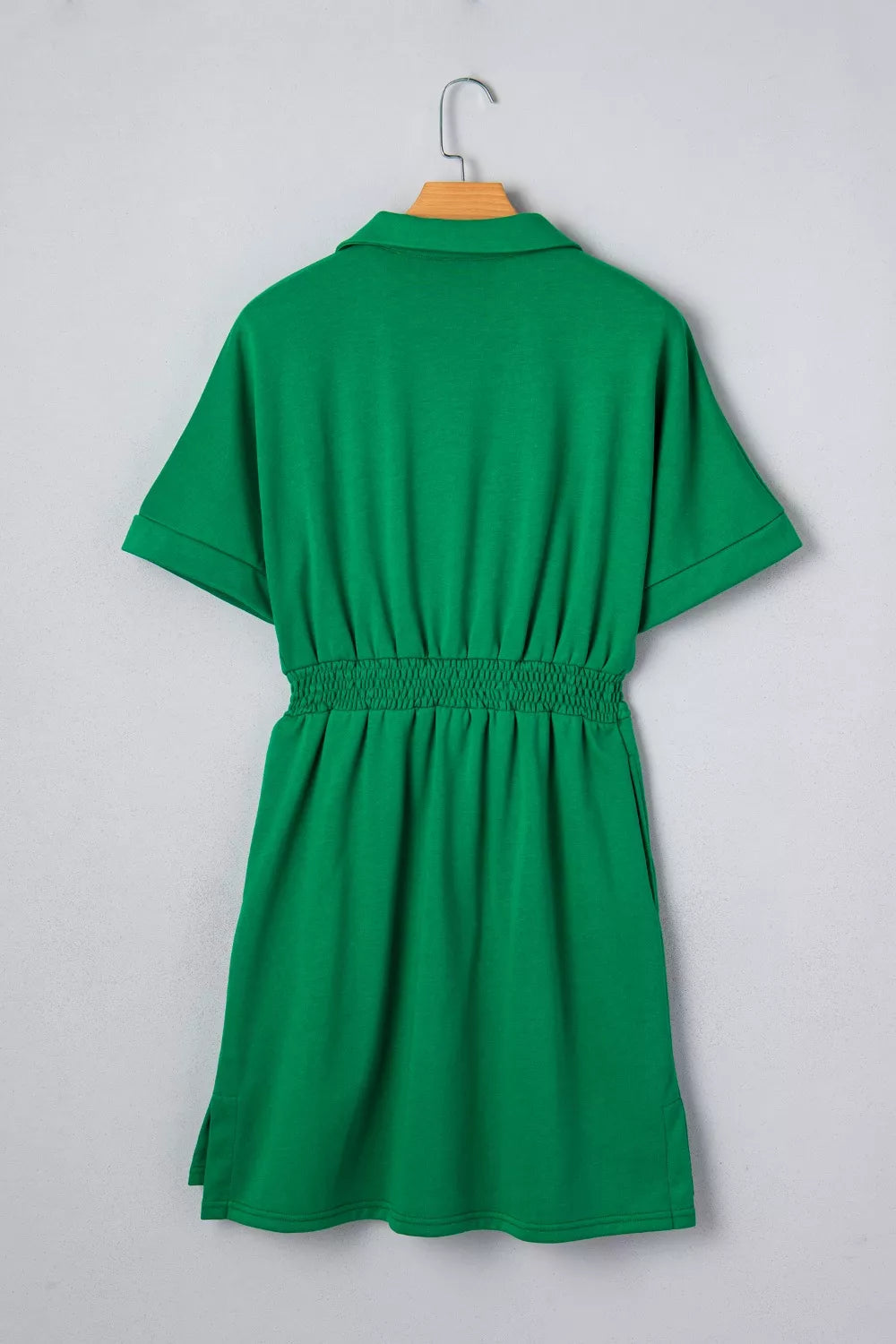 Contrast Patchwork Half Zip Elastic Waist Short Sleeve Mini Dress