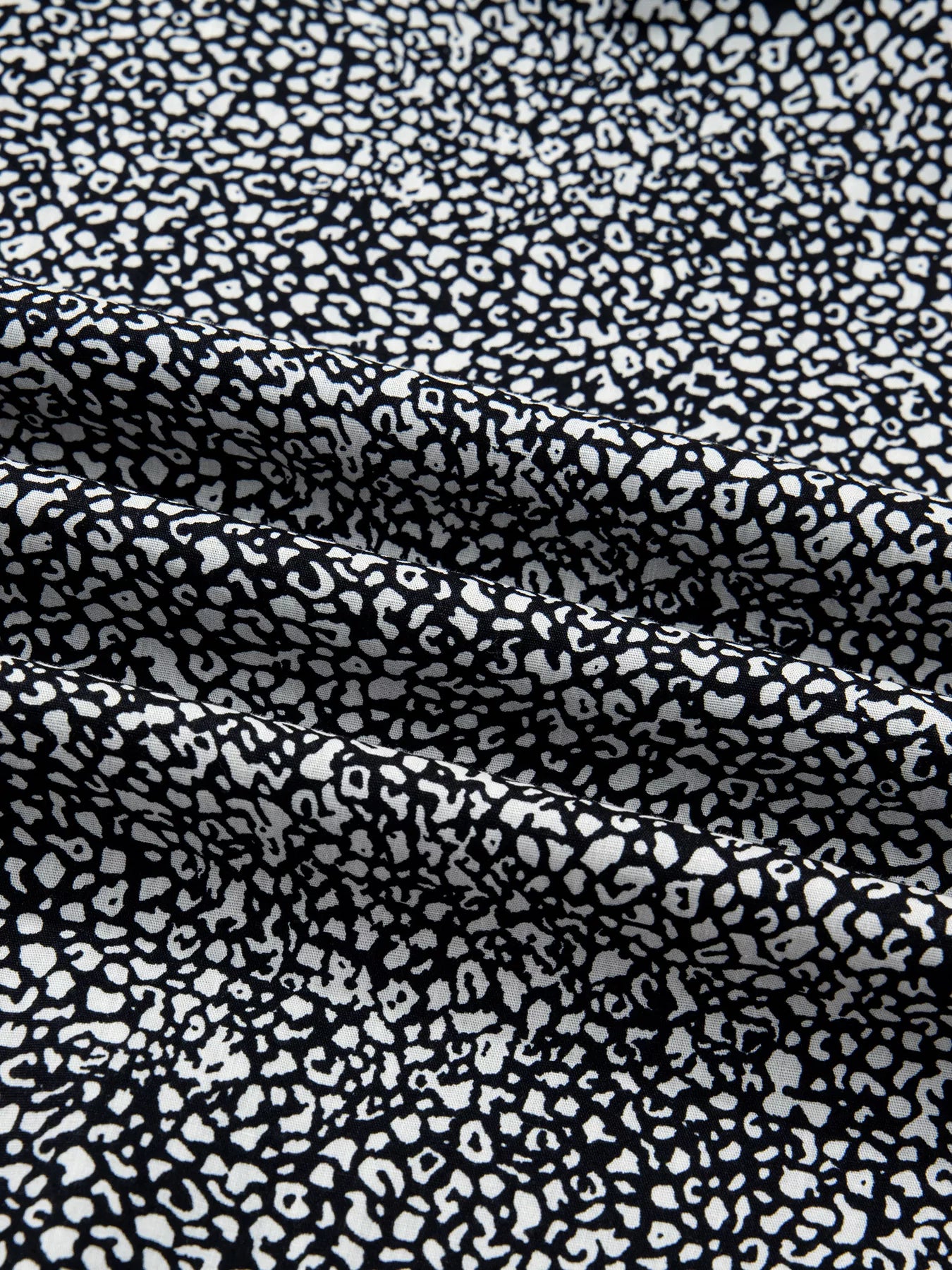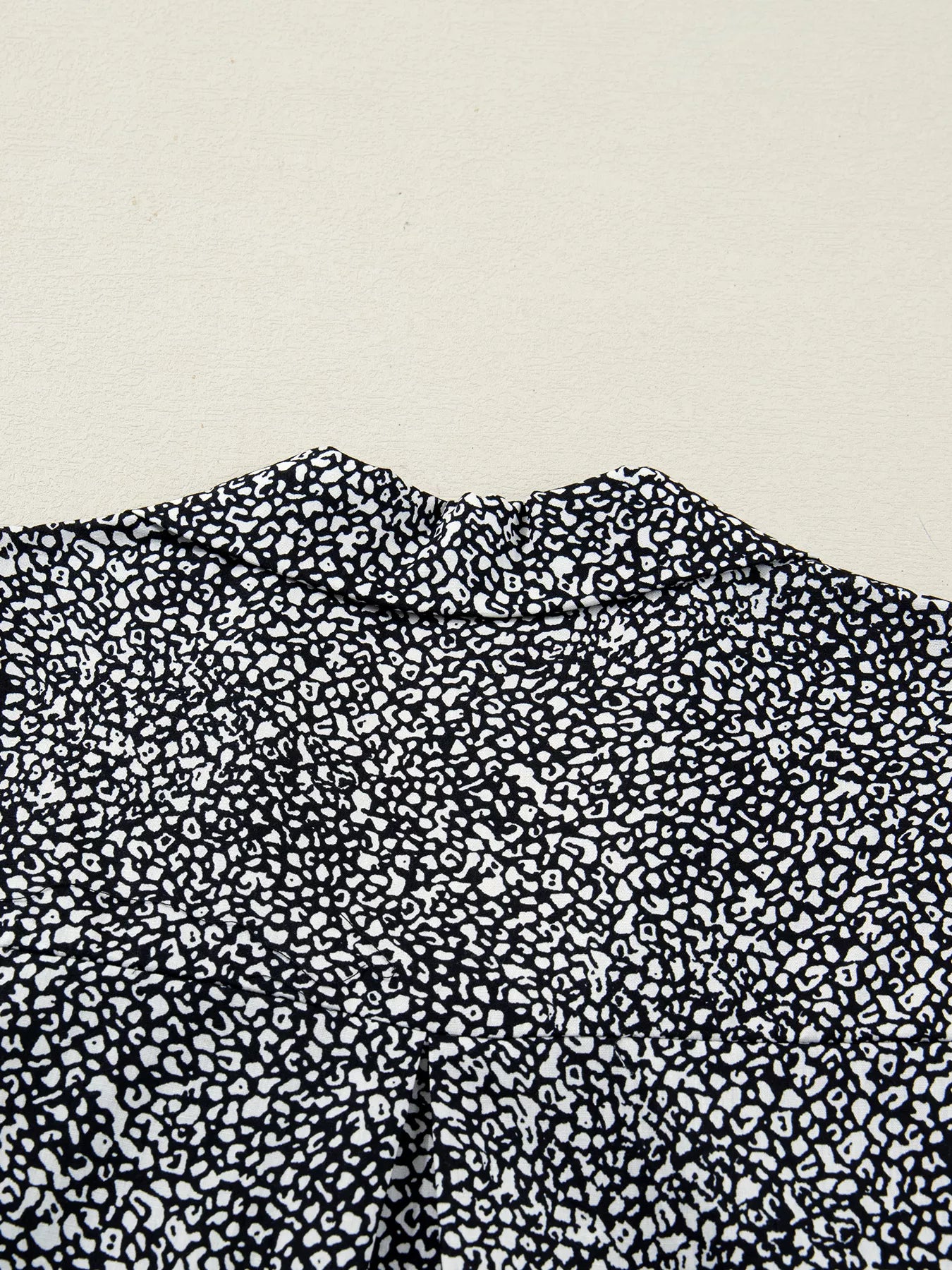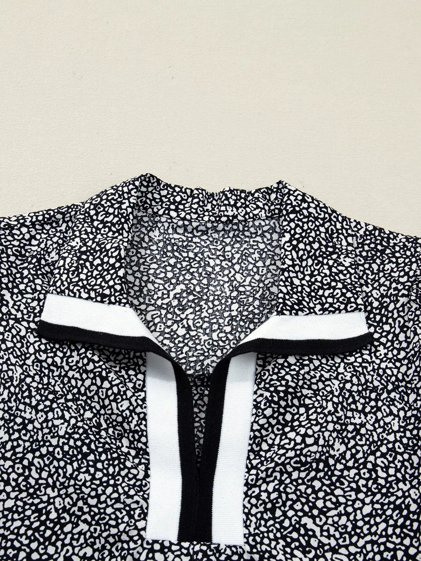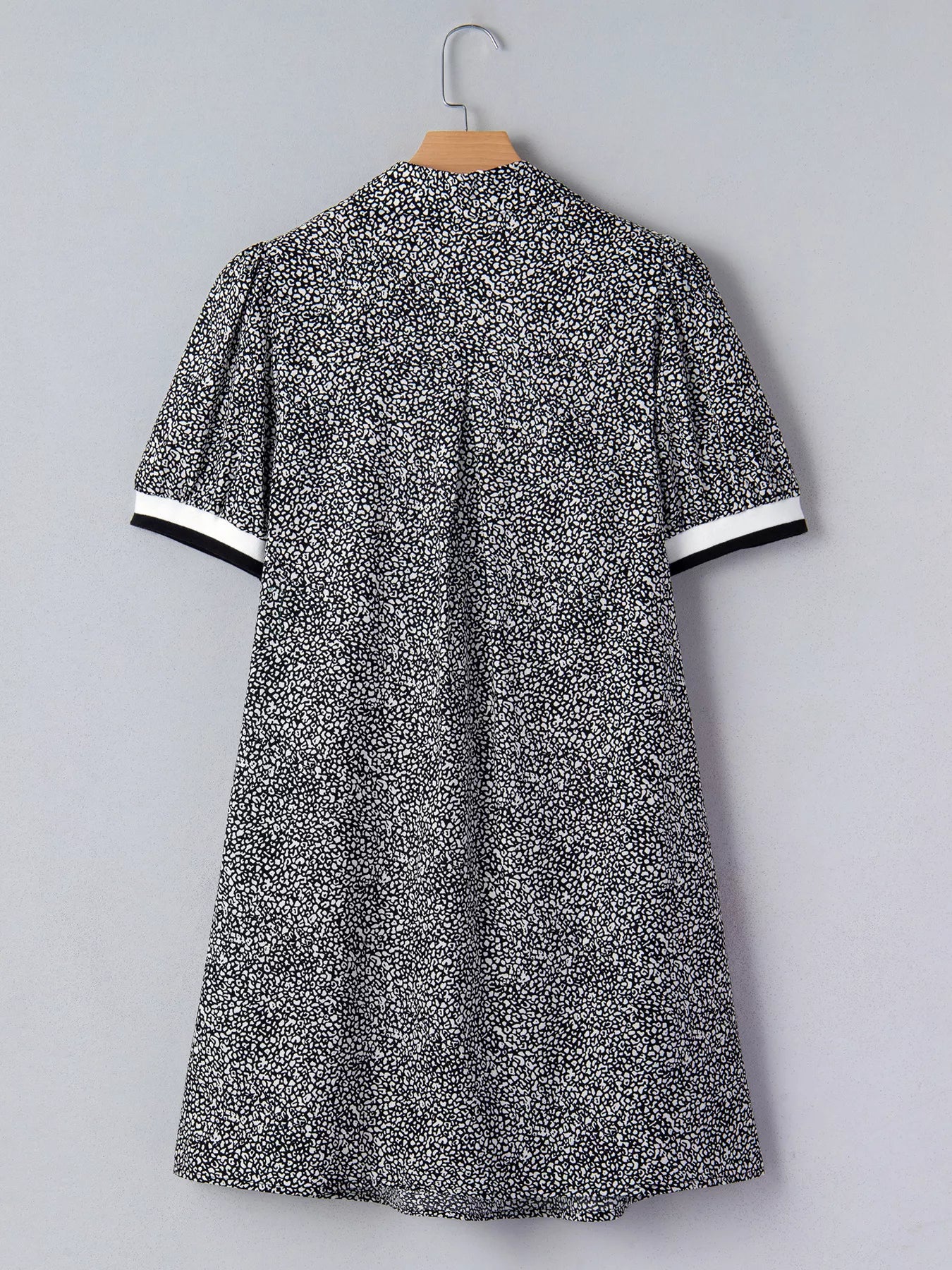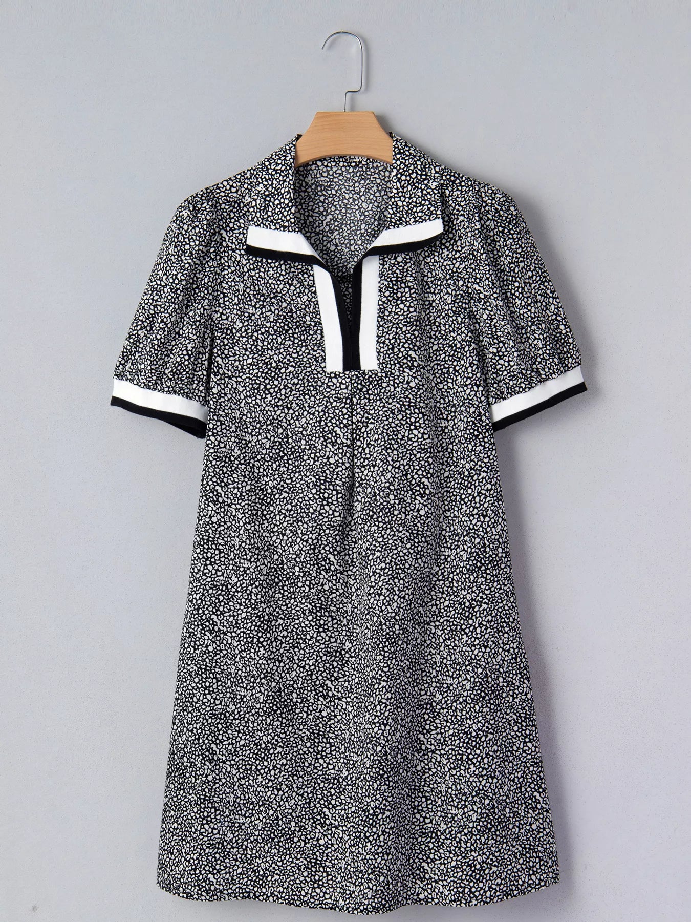 Leopard Print Contrast Striped Trim Polo Collar Short Sleeve Dress with Pockets
