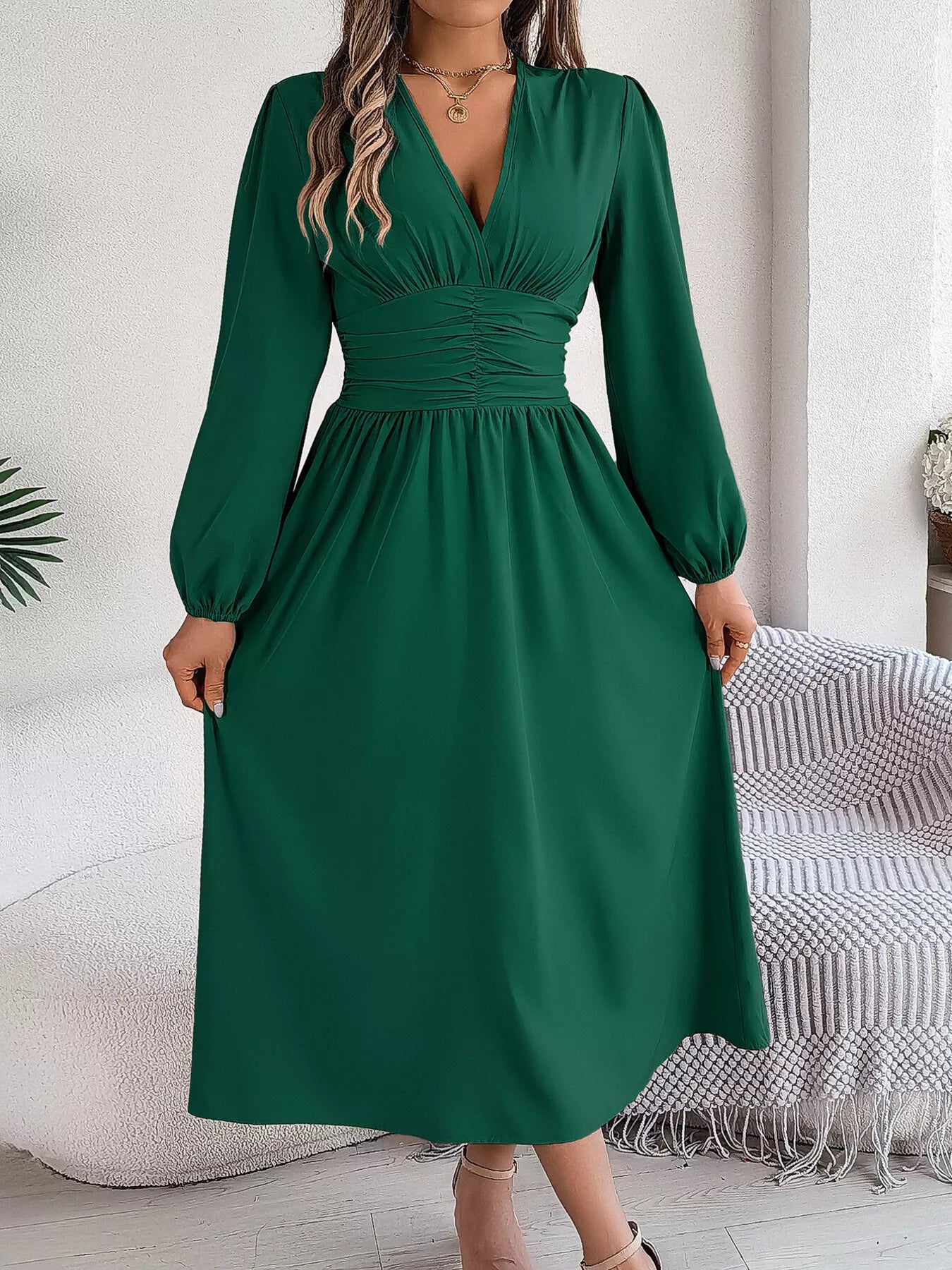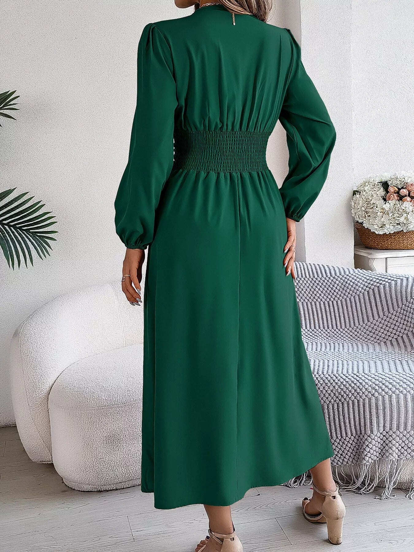 Slit Balloon Sleeve Midi Dress