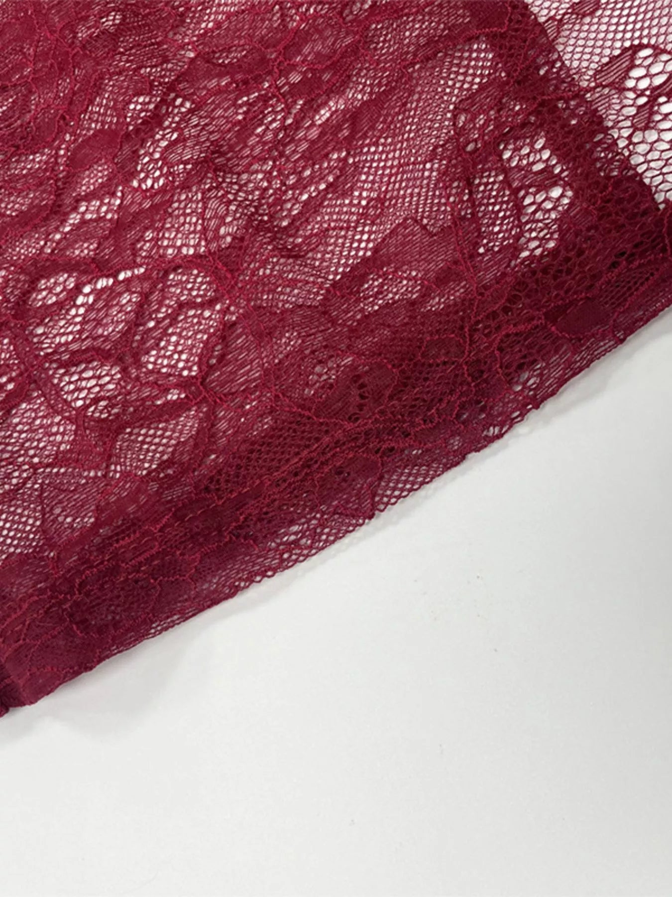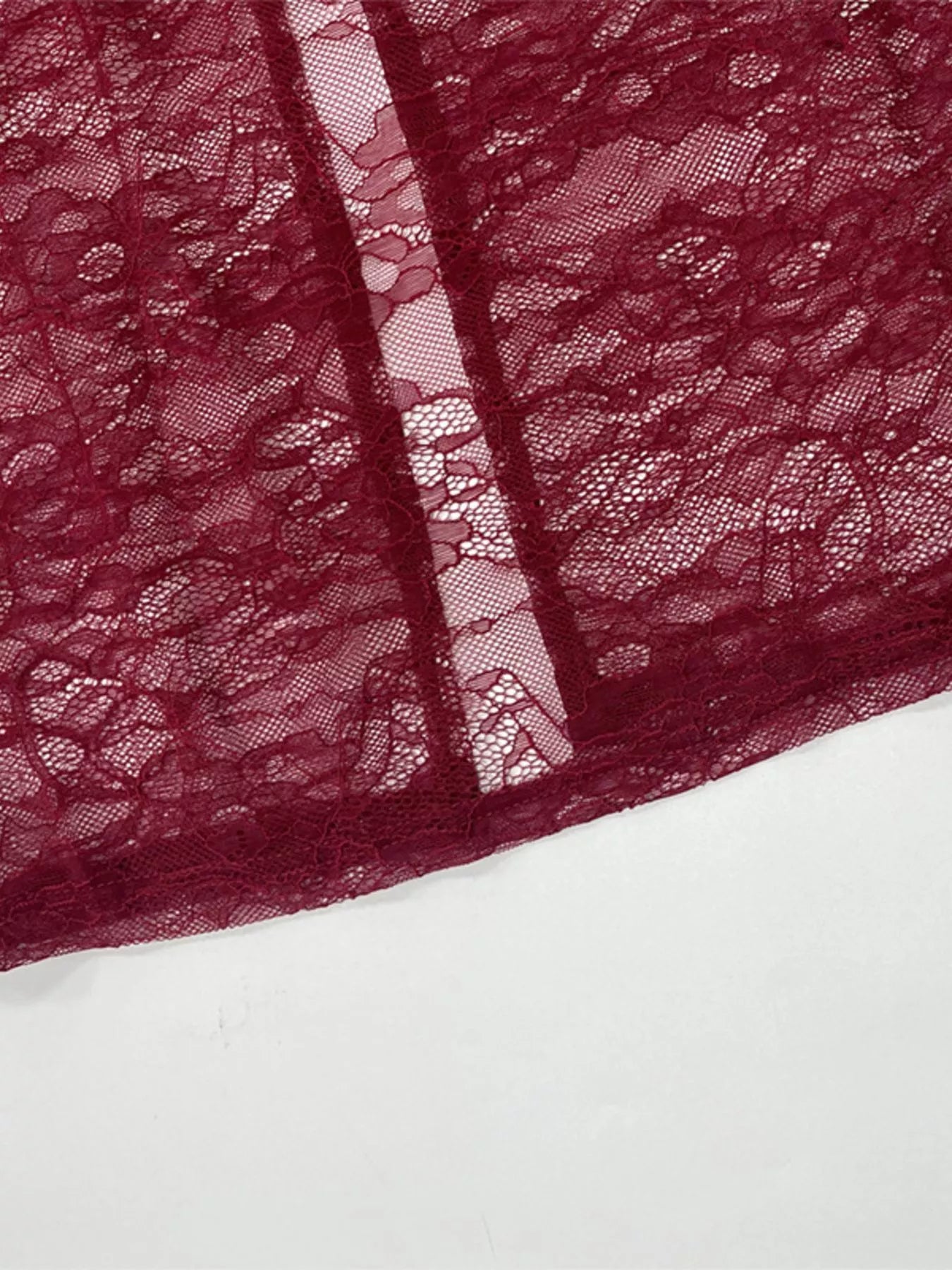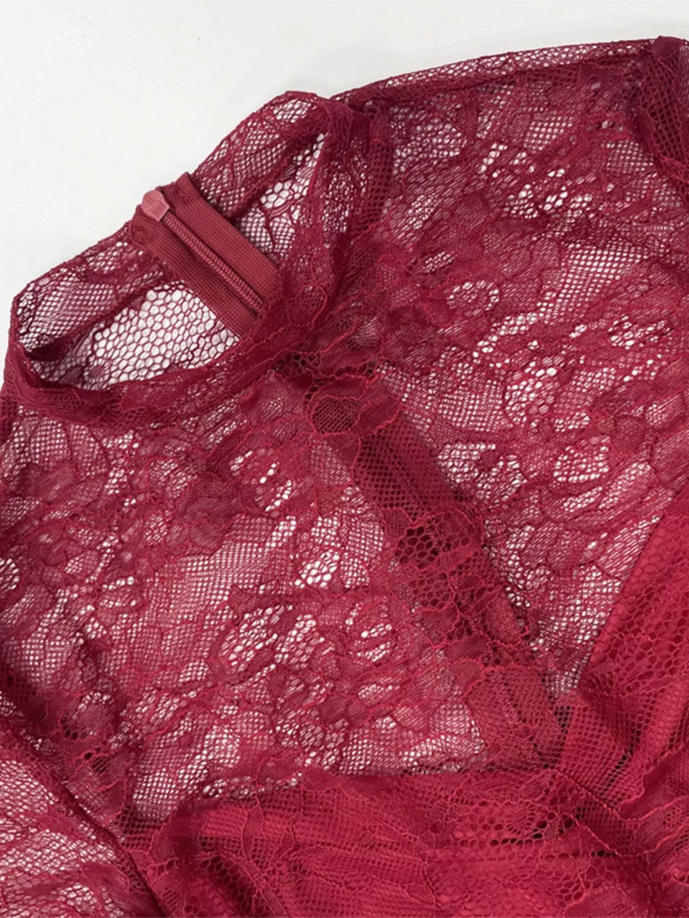 Lace Sheer Mock Neck Long Sleeve Maxi Dress