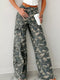 Colorful Sequin Christmas Tree Patched Raw Hem Cropped Wide Leg Jeans