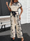 Printed Short Sleeve Wide Leg Jumpsuit