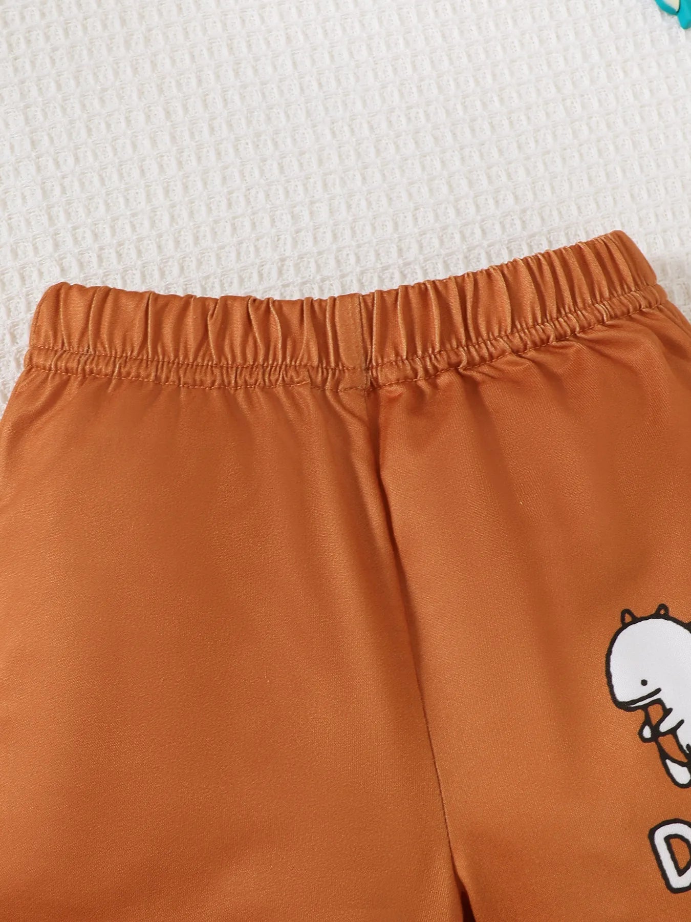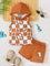 Children's Dinosaur Checkered Sleeveless Hooded Top and Shorts Set