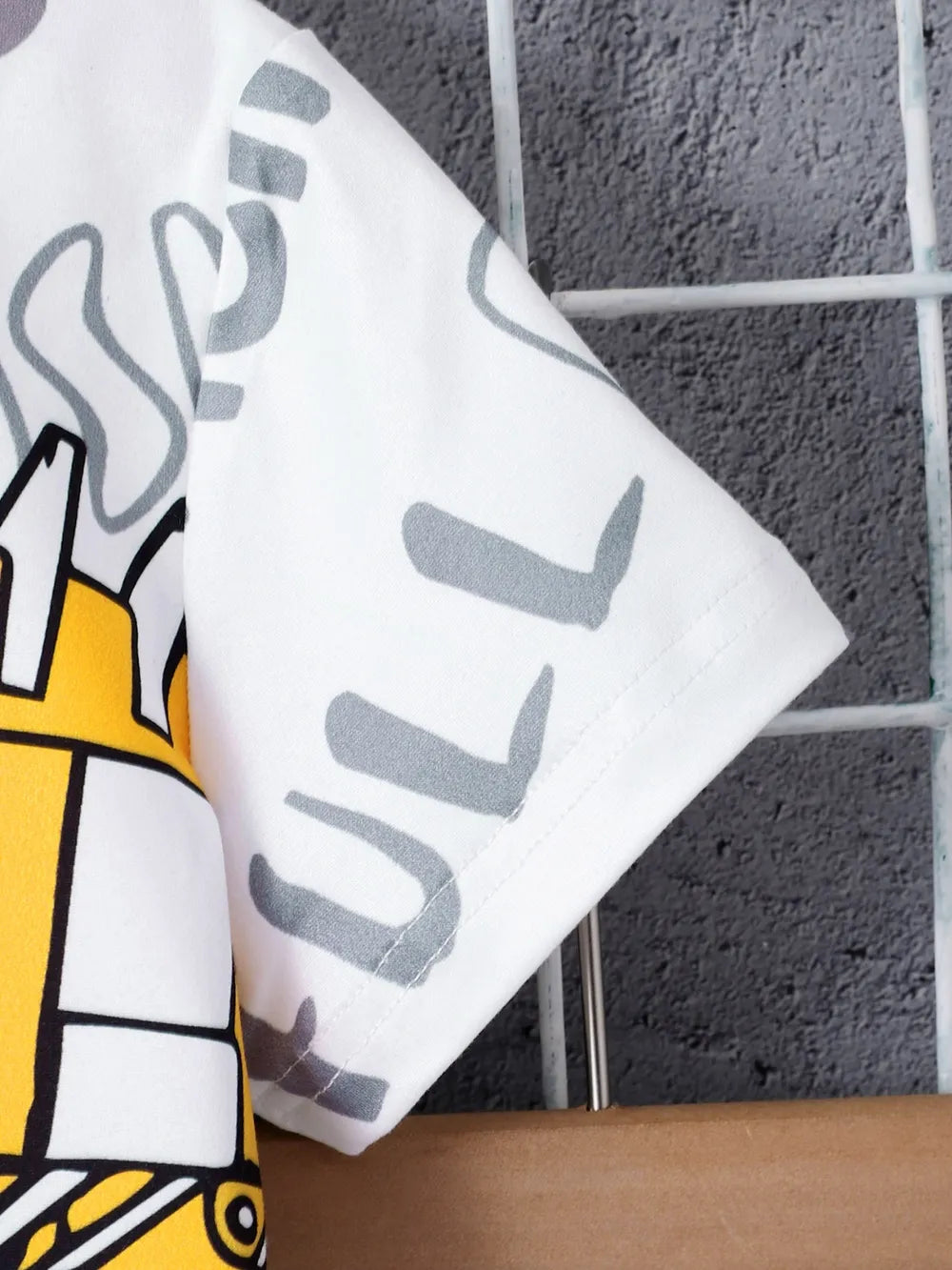 Children's Round Neck Cartoon Graphic T-Shirt and Shorts Set