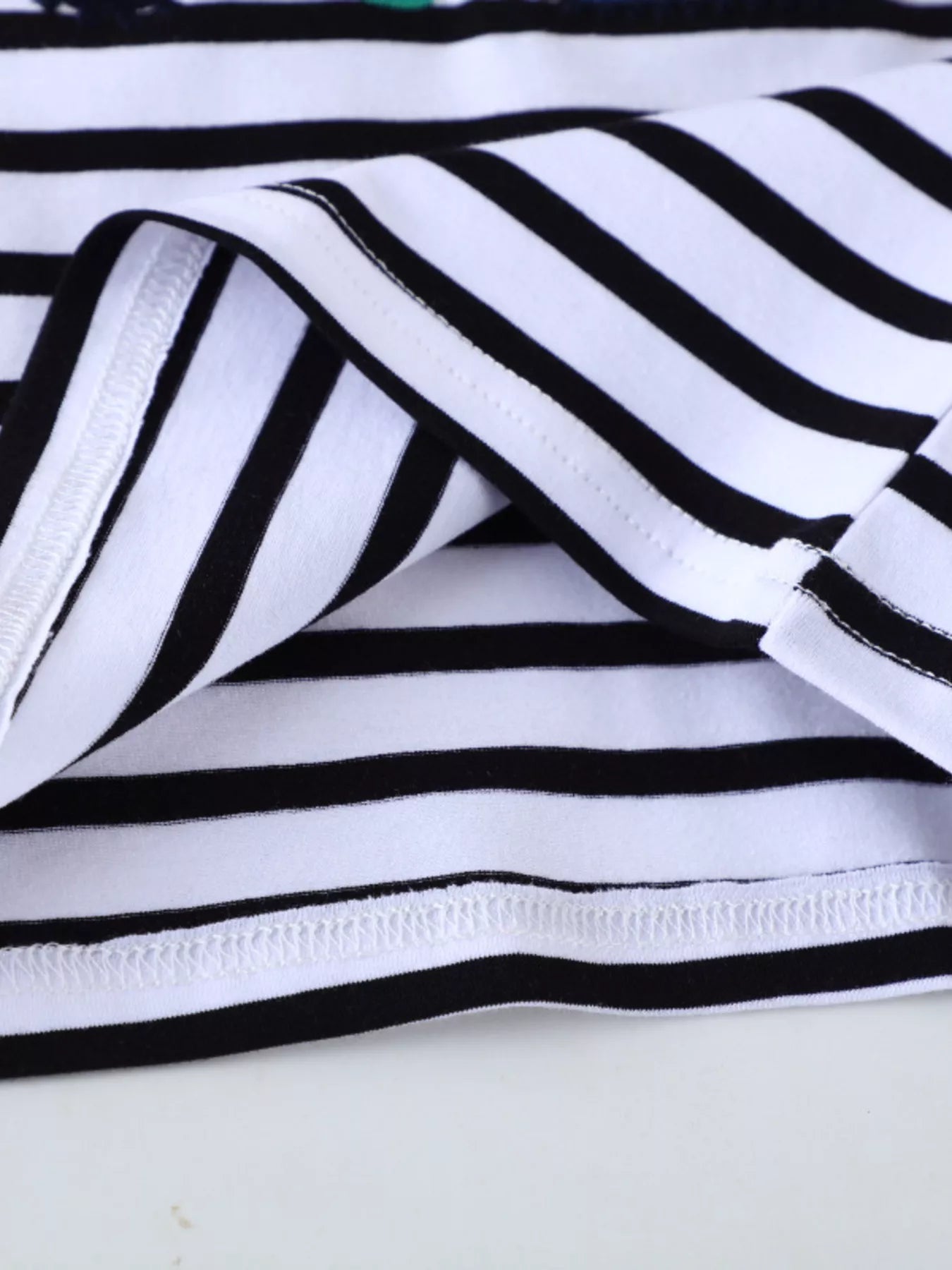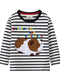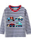 Children's Striped Long Sleeve T-Shirt with Construction Vehicle Appliques