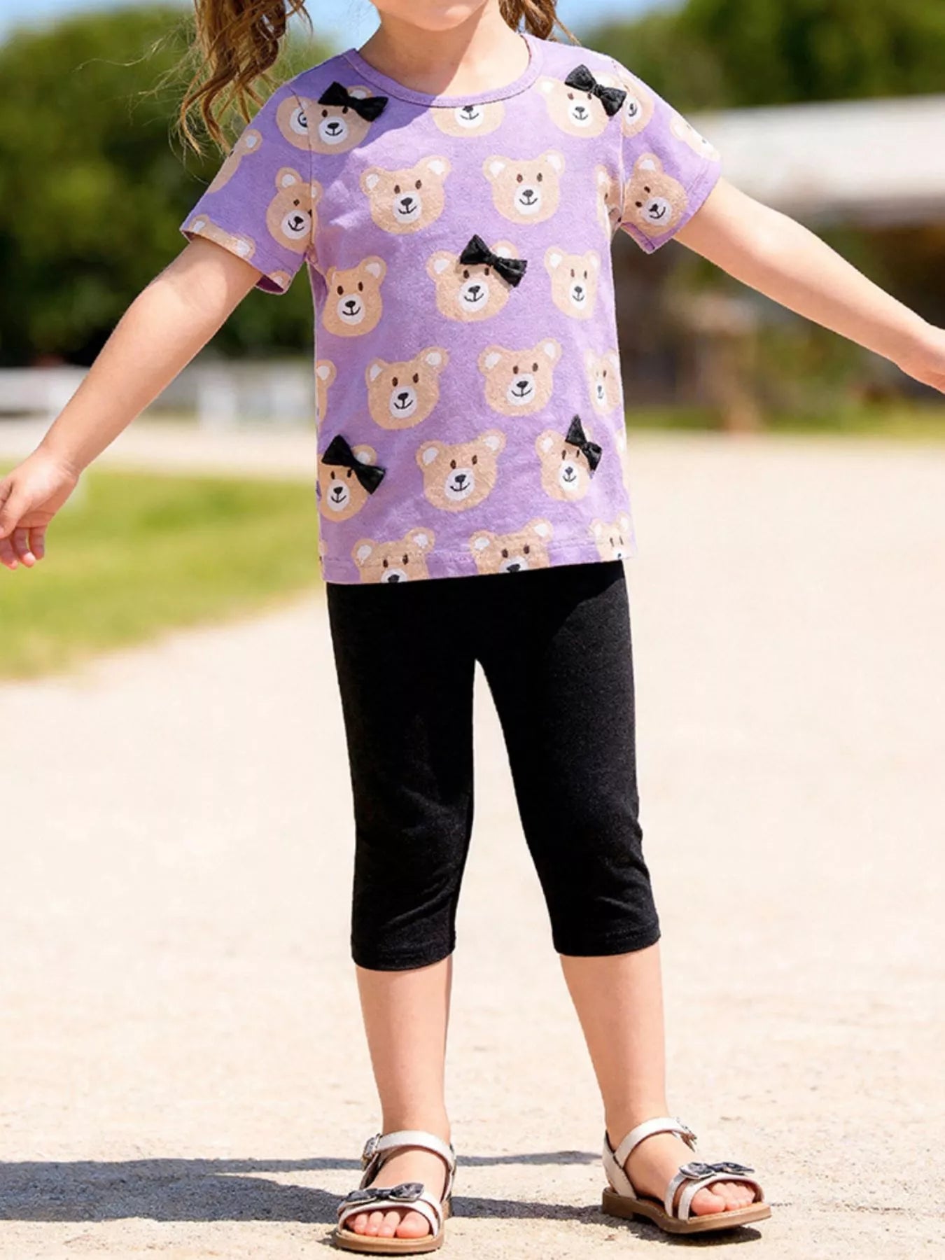 Children's Bear Print Top & Capri Leggings Set
