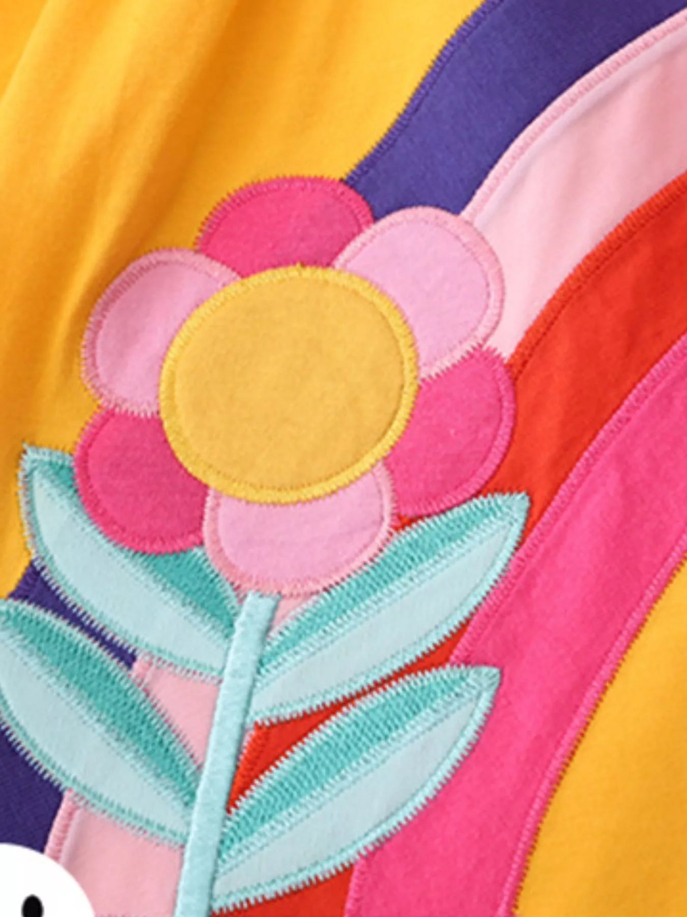 Children's Butterfly & Rainbow Round Neck Casual Dress