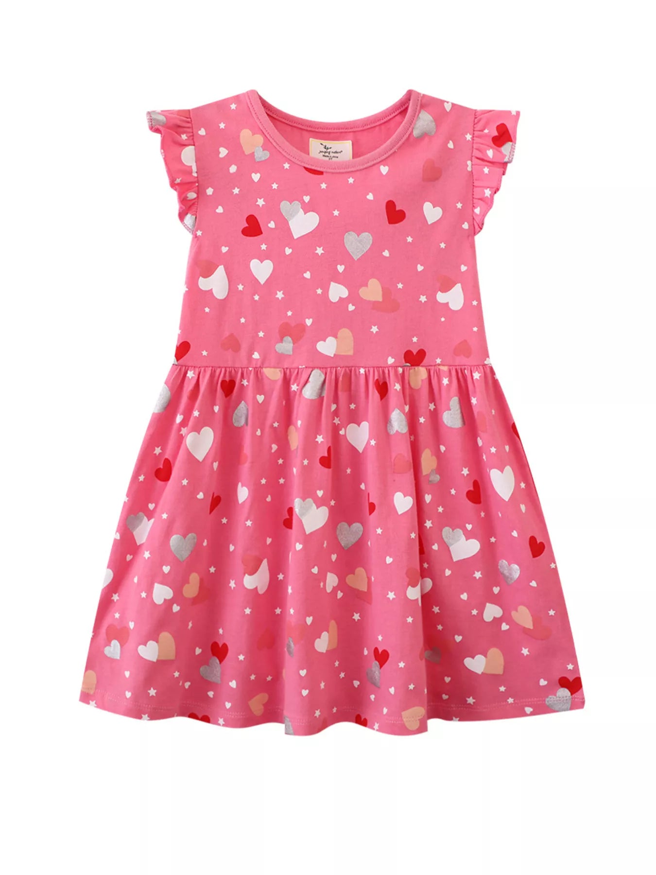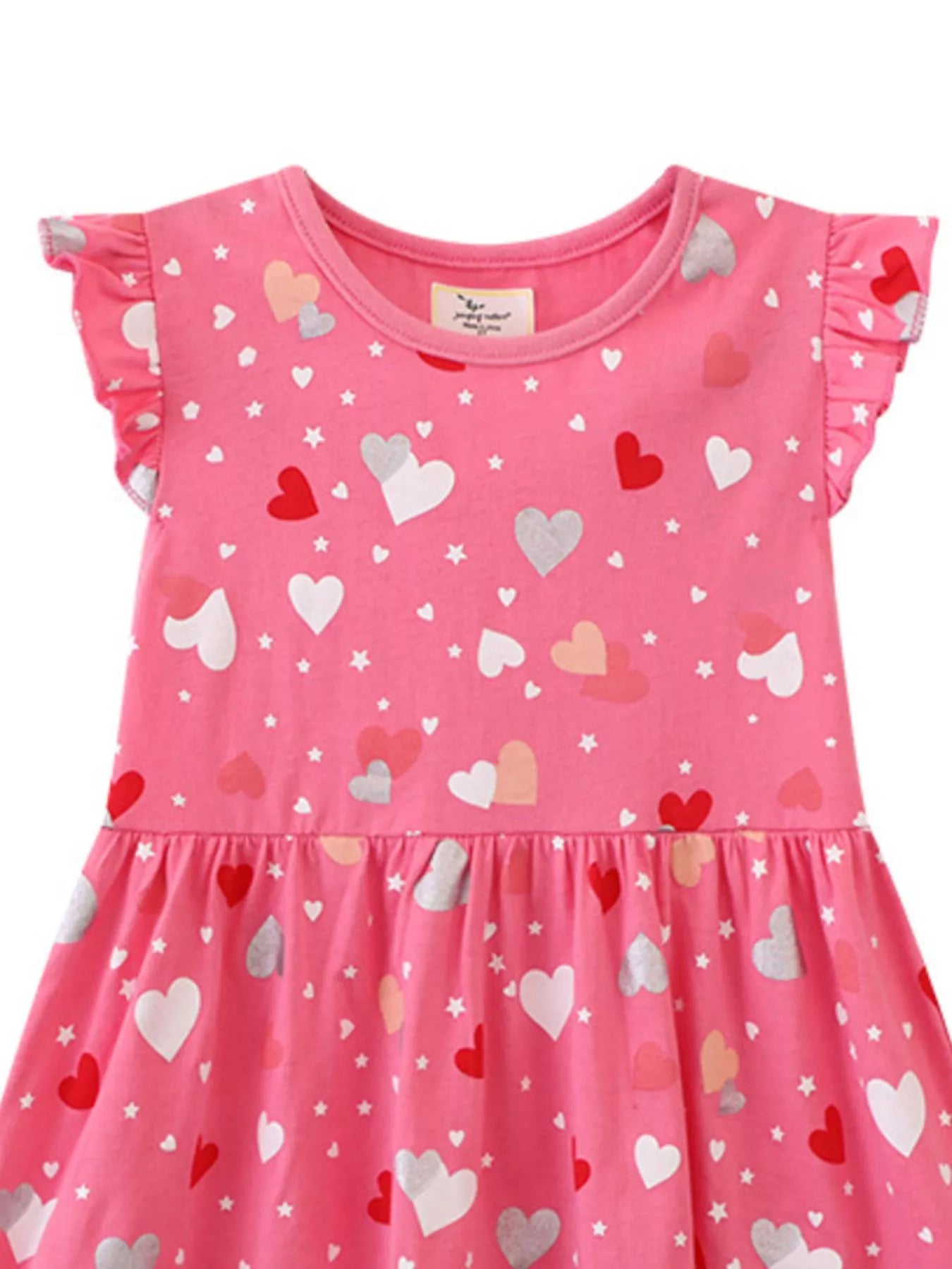 Children's Heart Print Ruffle Sleeve Casual Dress