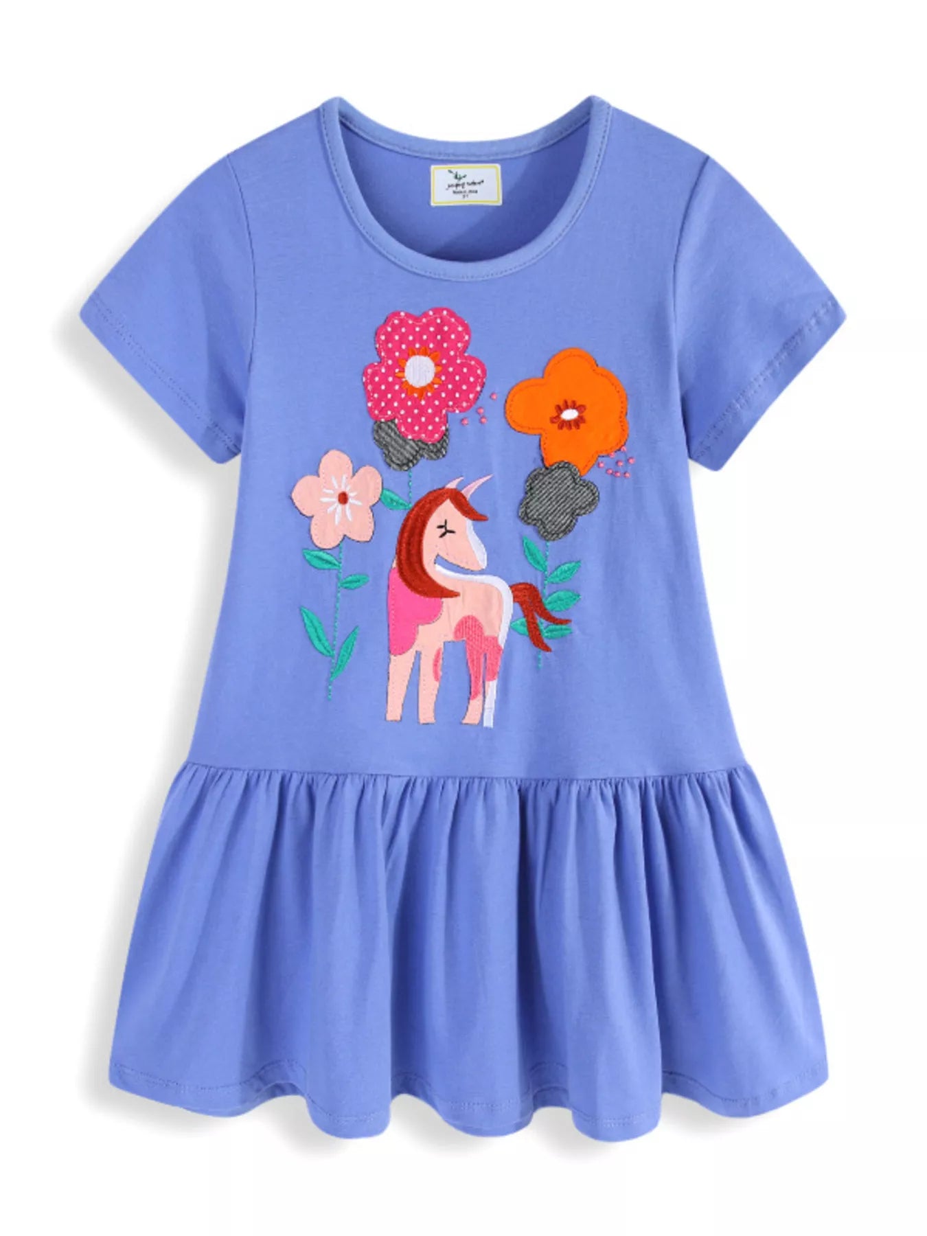 Children's Unicorn Floral Applique Ruffle Hem Dress