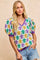 BiBi Mardi Gras Fleur De Lis Patterned V Neck Knit Top