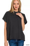 BiBi Stripe Short Sleeves Collared V Neck Top