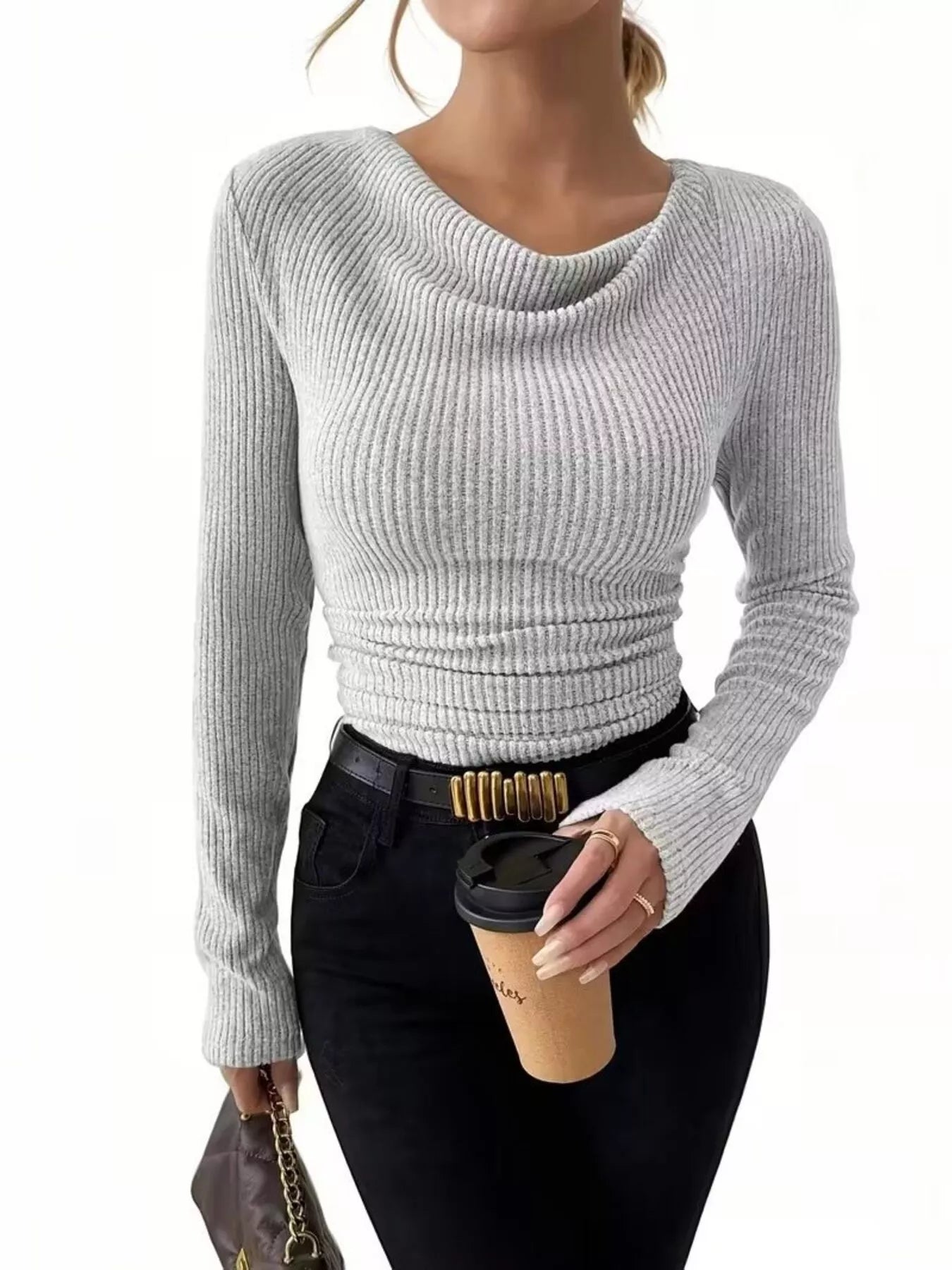 Cowl Neck Ribbed Knit Top
