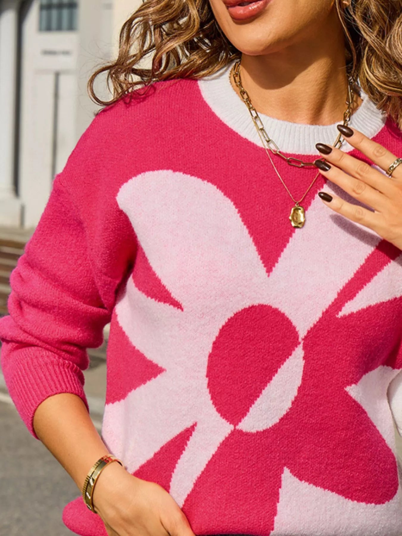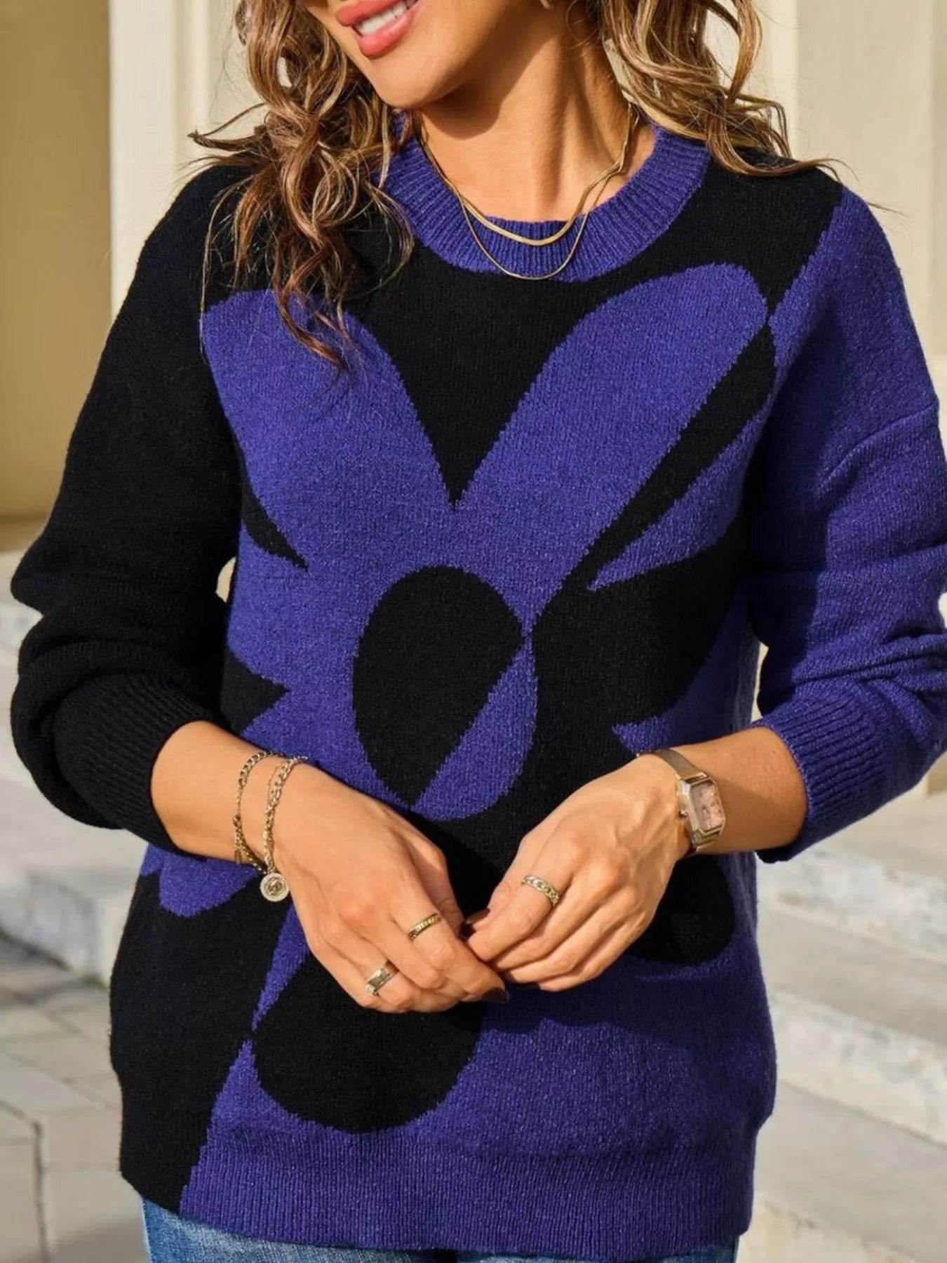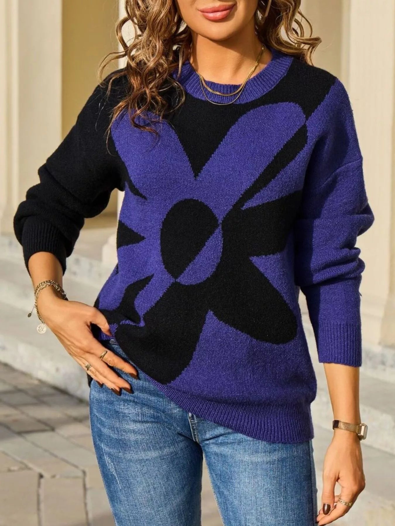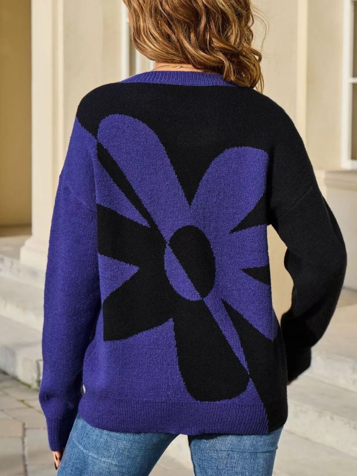 Floral Pattern Color Block Sweater