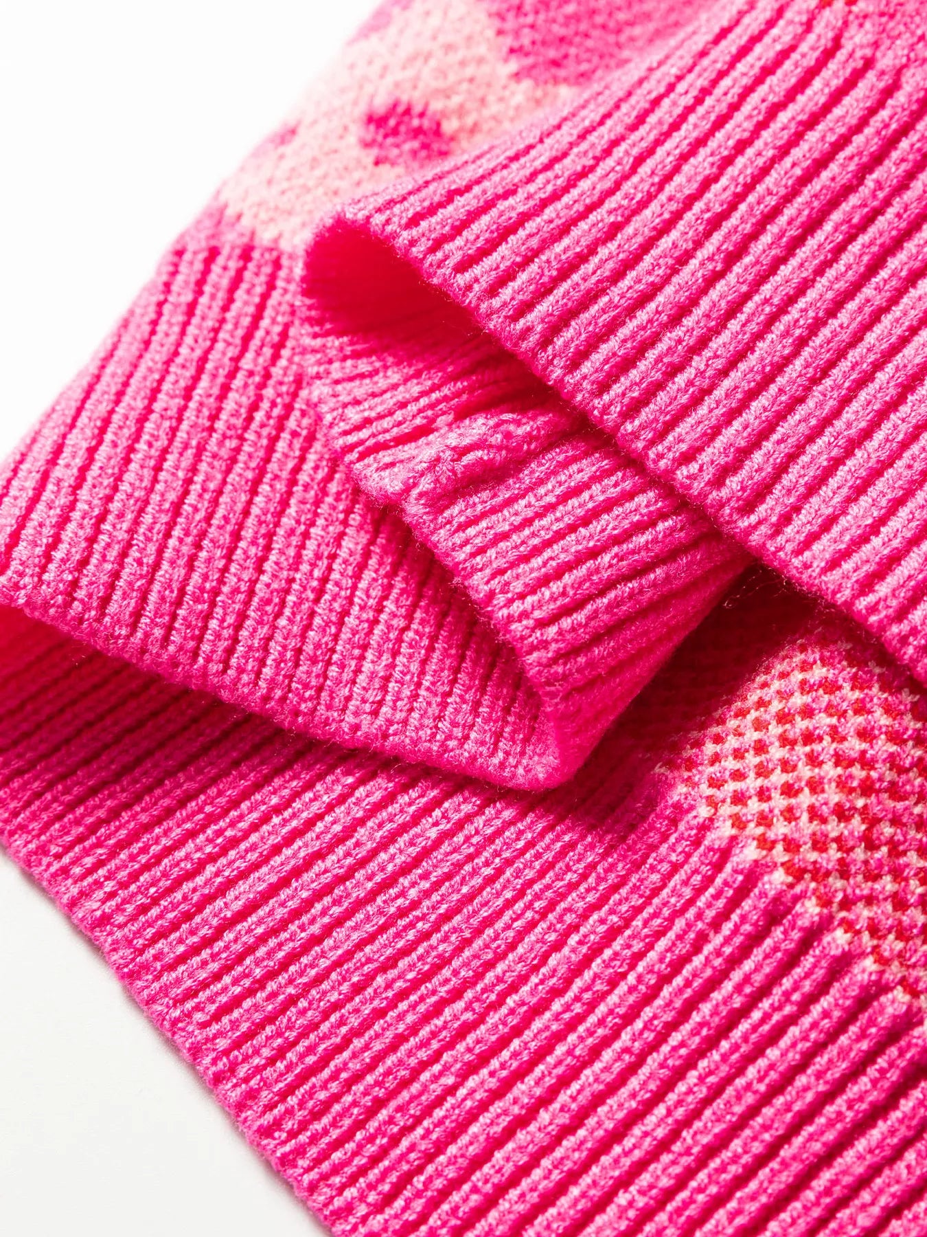 Flower Ribbed Trimmed Drop Shoulder Sweater