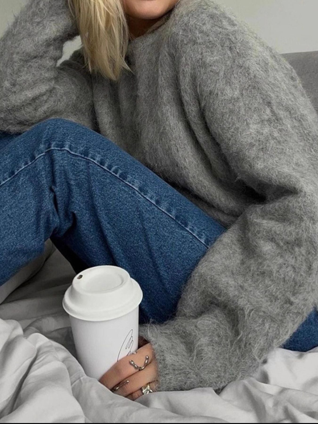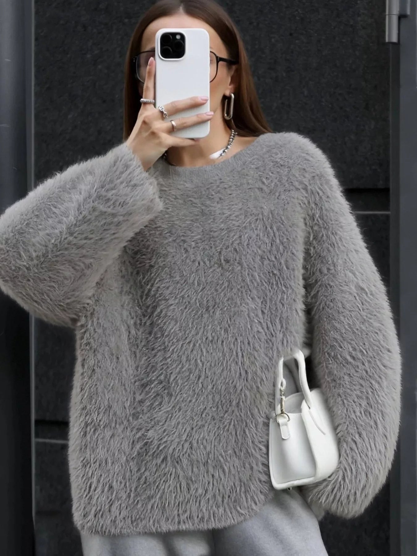 Fuzzy Round Neck Long Sleeve Sweater