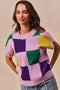 SO ME Openwork Round Neck Wide Stripe Textured Sweater
