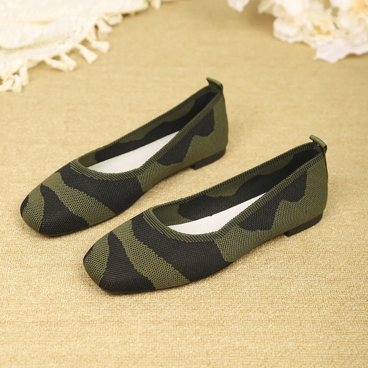 Camouflage Mesh Knit Flat Loafers