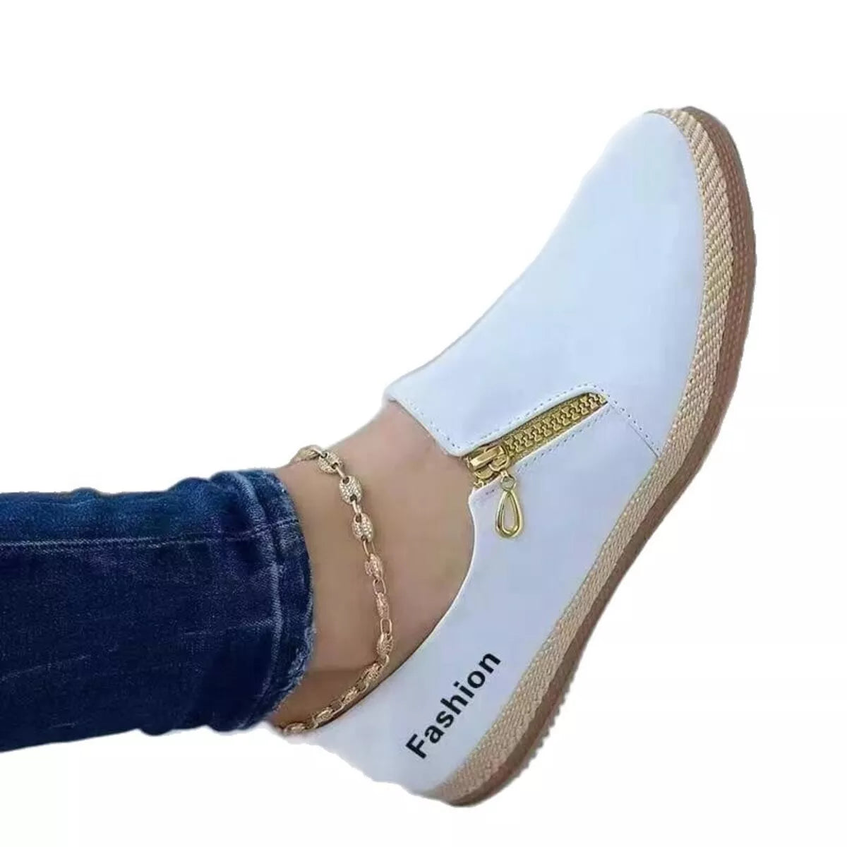 Zip Detail Round Toe Slip-Ons