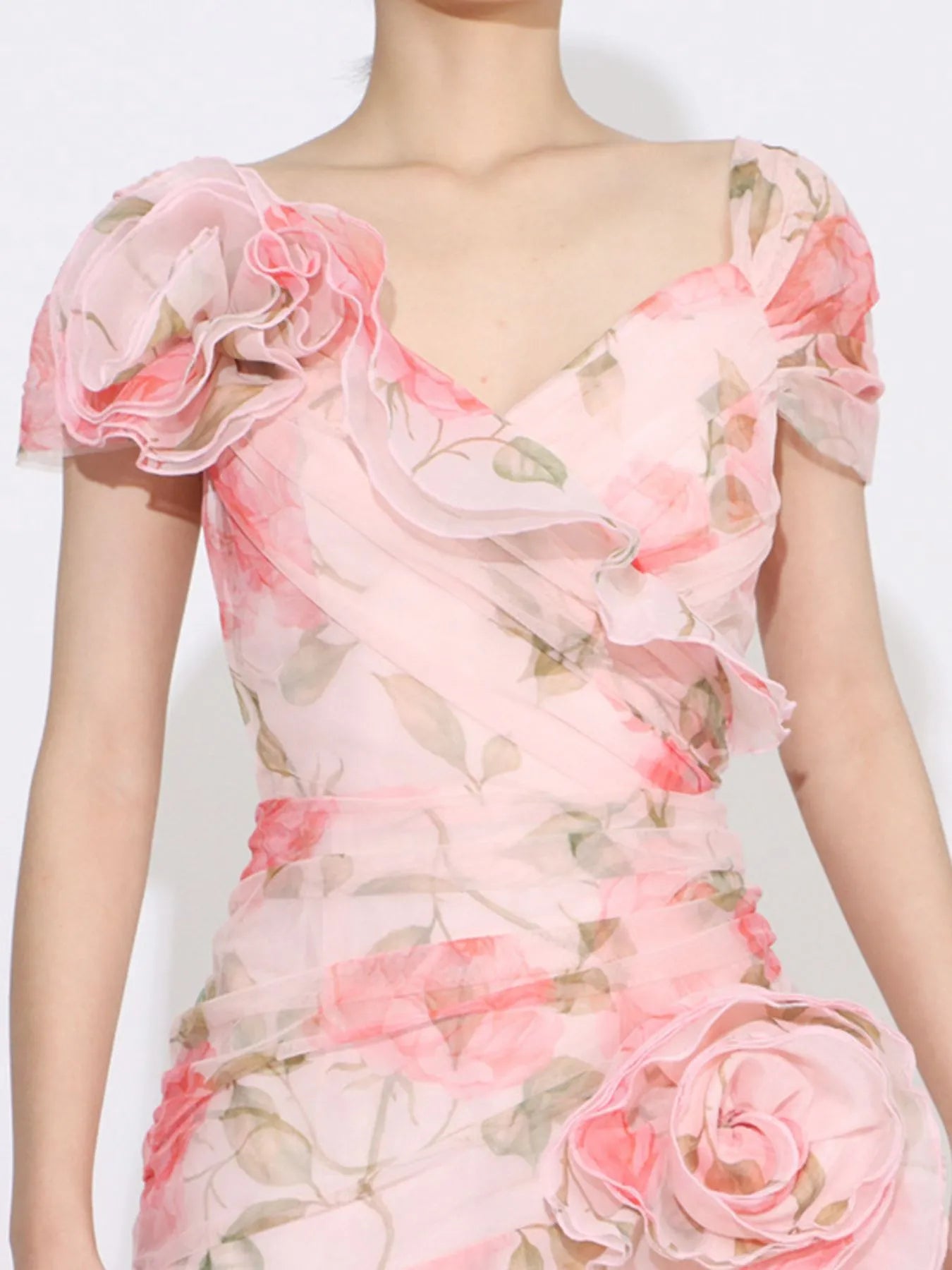 Floral Ruffled Short Sleeve Maxi Dress
