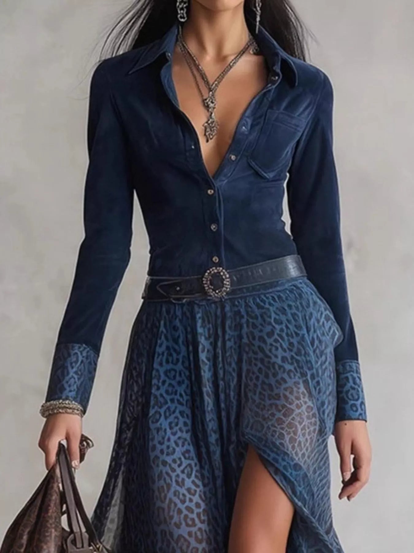 Leopard Button Front Slit Maxi Dress