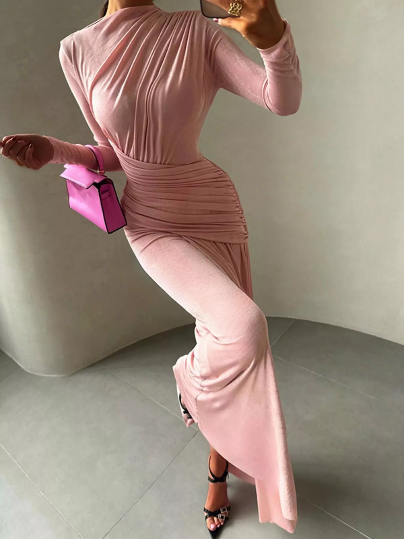 Ruched Long Sleeve Maxi Dress