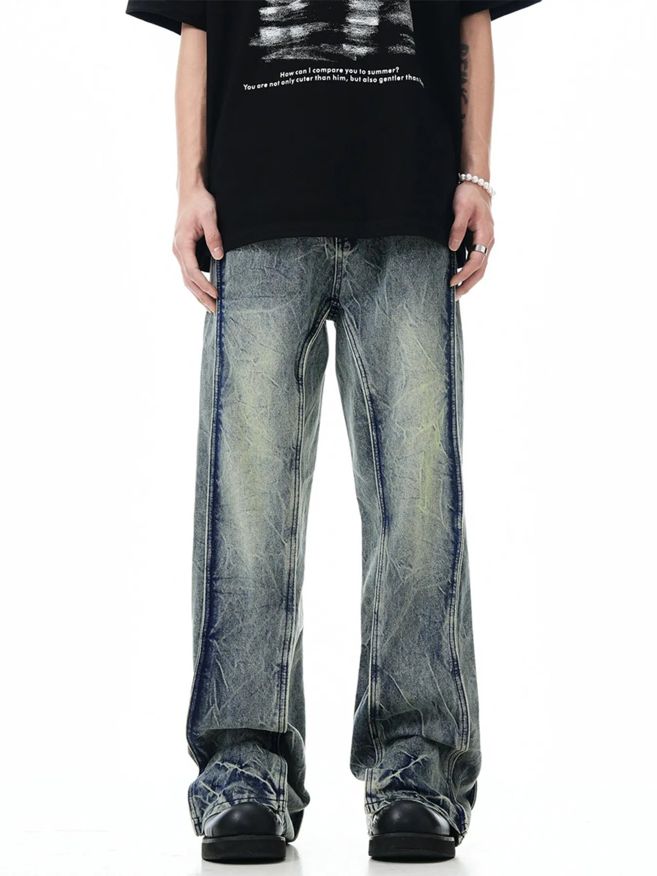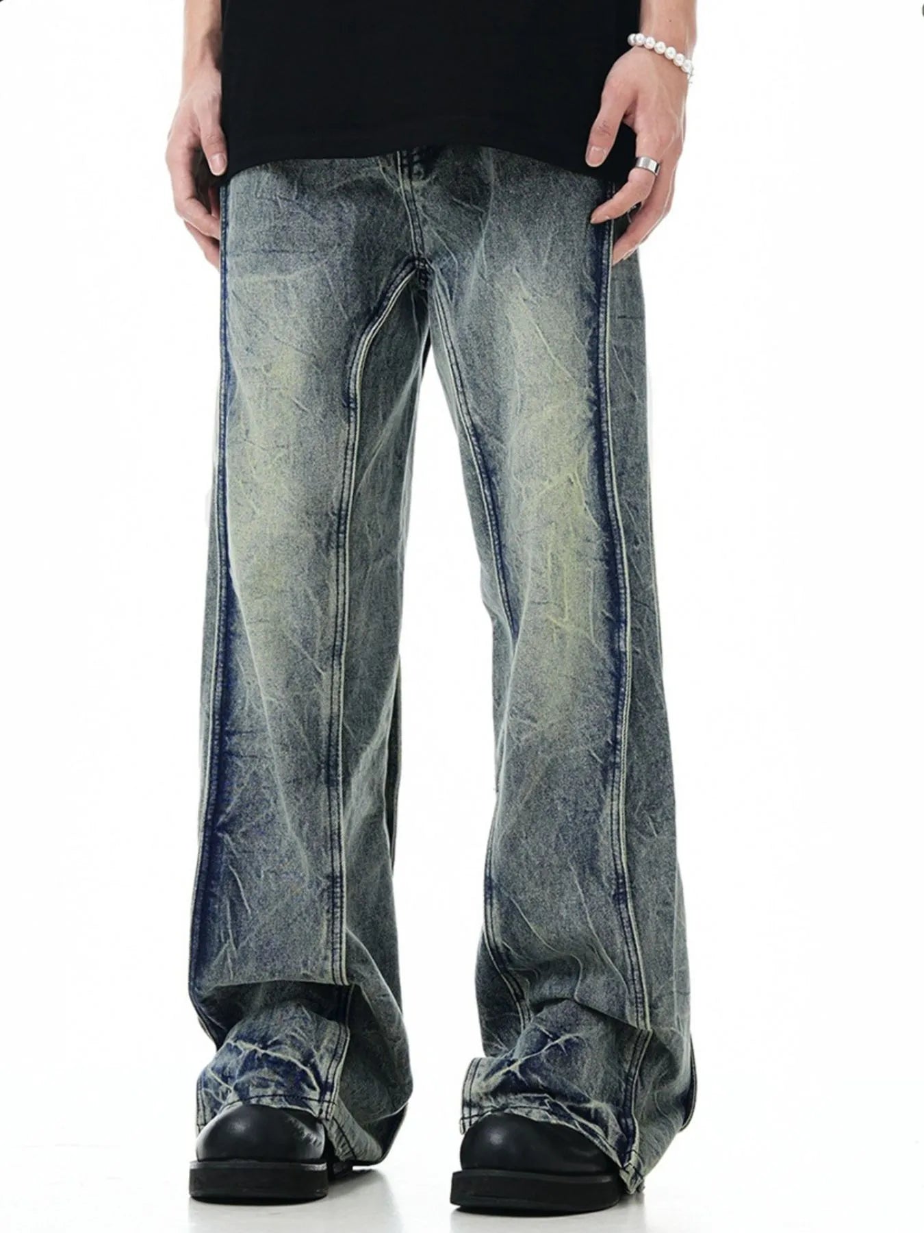 Men's Washed Wide Leg Jeans