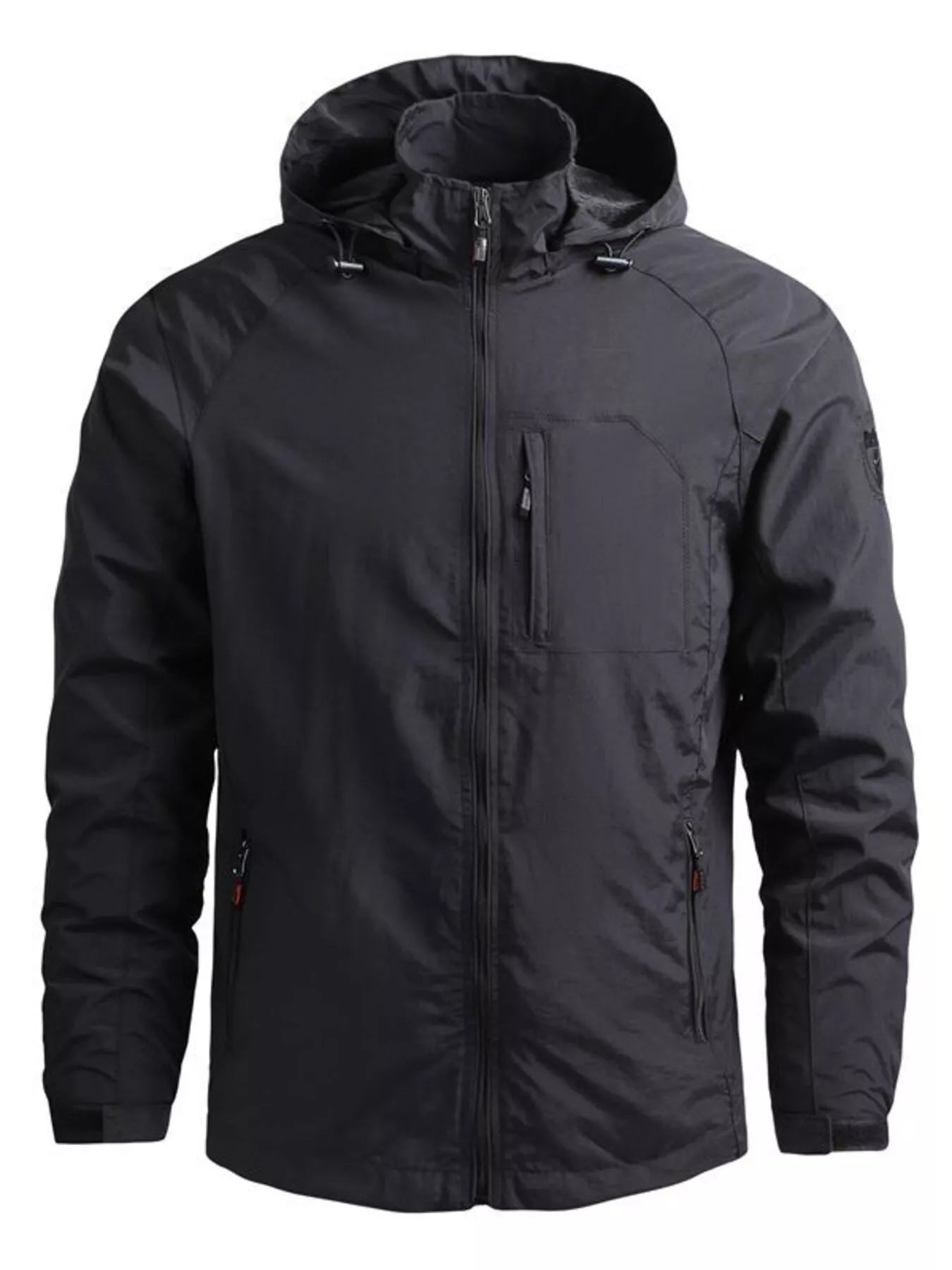 Men's Plus Size Zip Up Long Sleeve Hooded Jacket