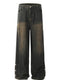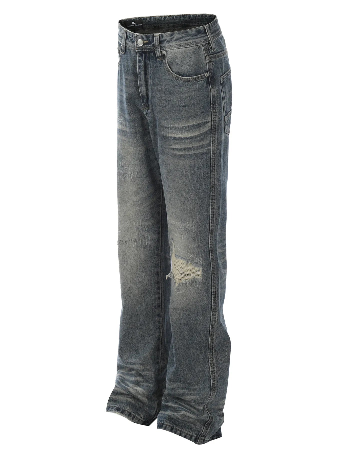 Men's Cat's whisker Washed Distressed Straight Jeans