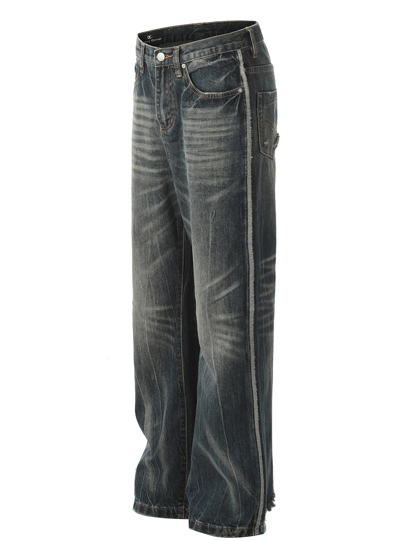 - Features:Basic style,Seam detail,Cat's whisker,Washed