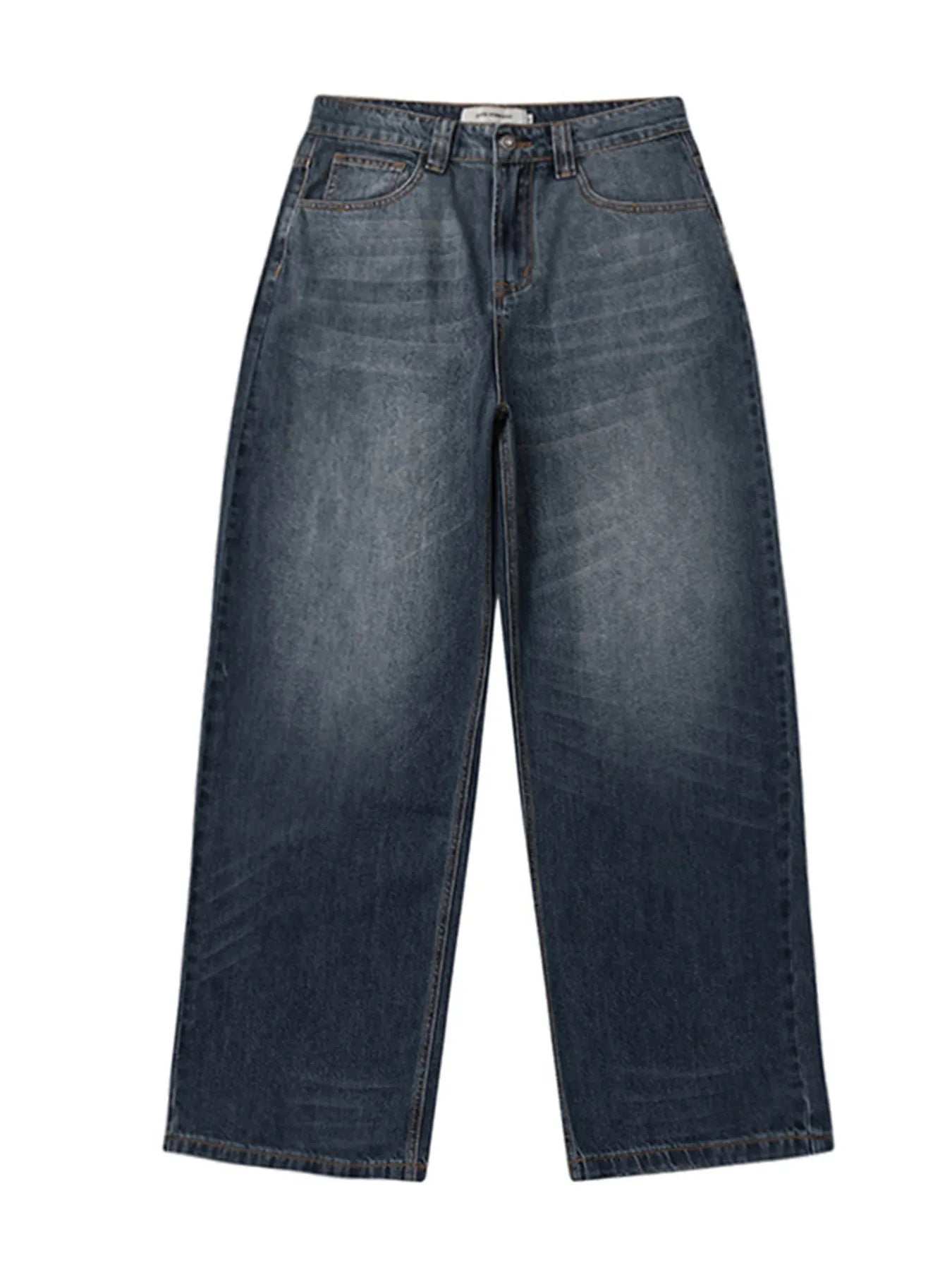 Men's Vintage Washed Gradient Wide-Leg Baggy Jeans