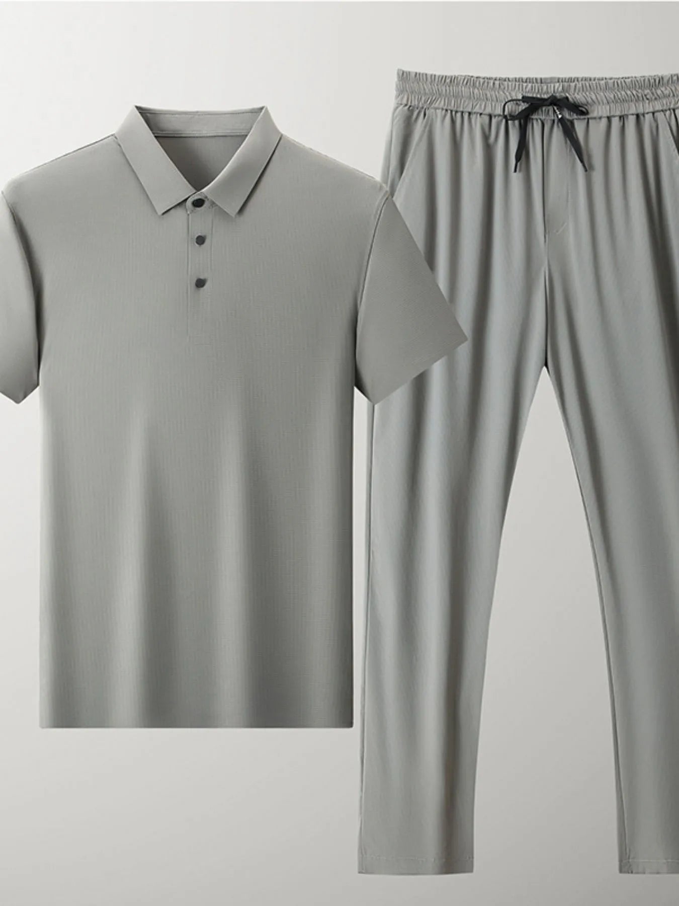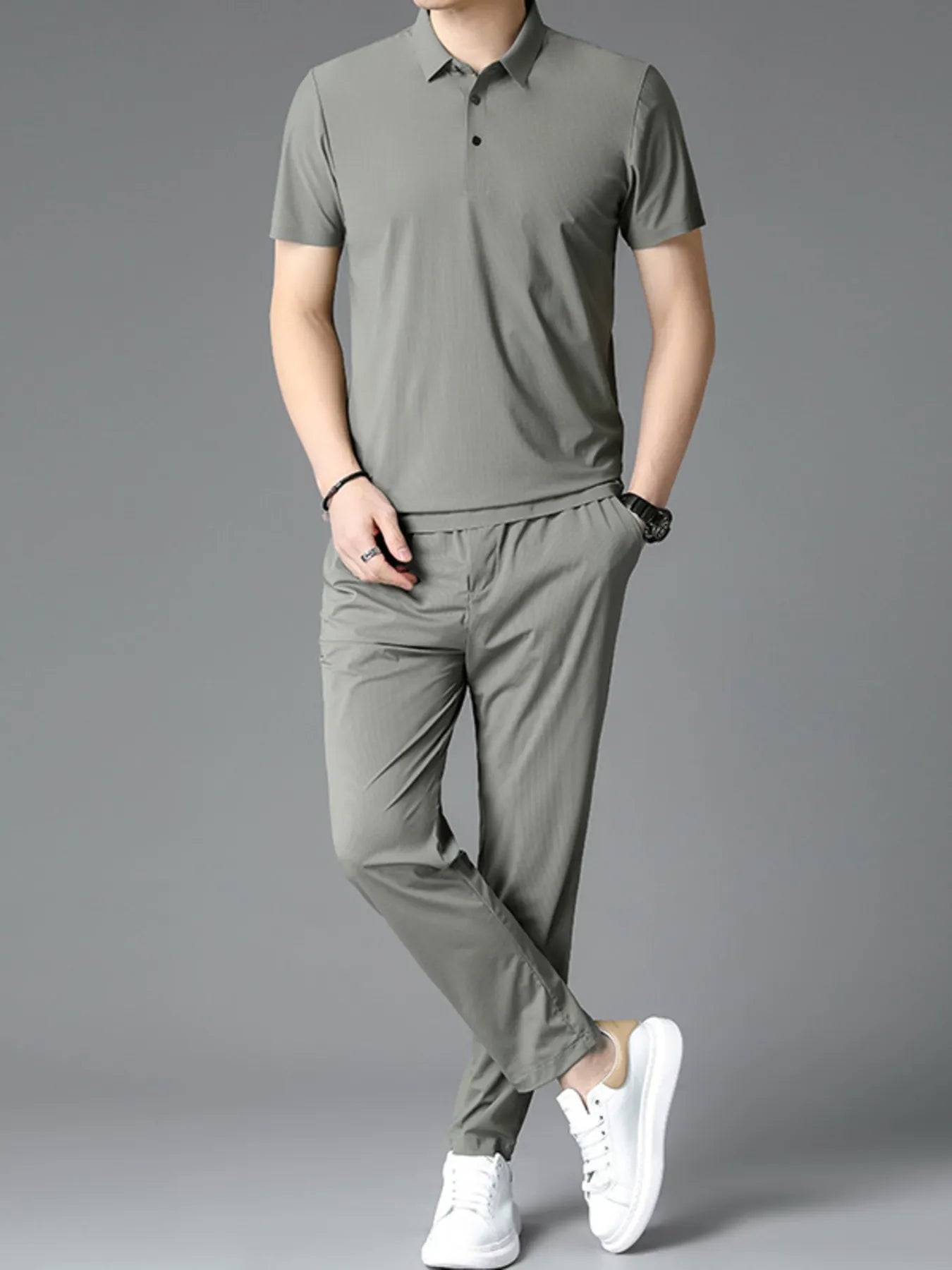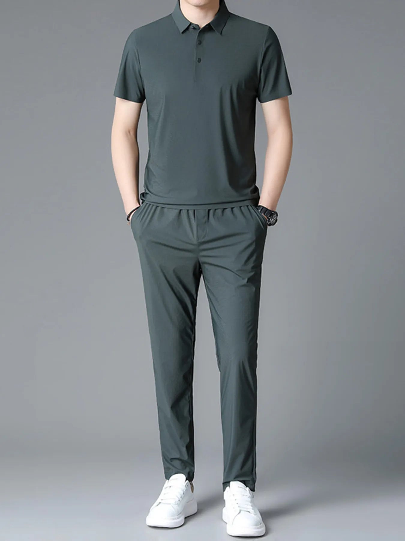 Men's Full Size Button Detail Short Sleeve Polo Plus Size
