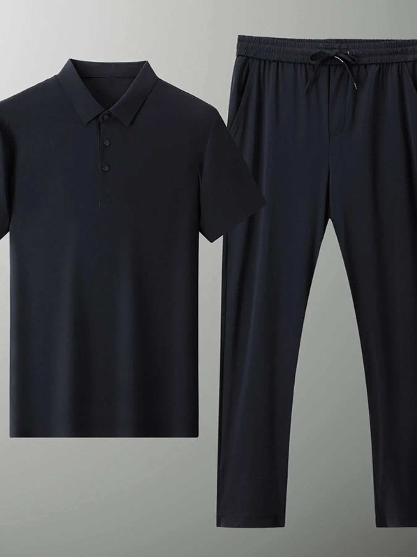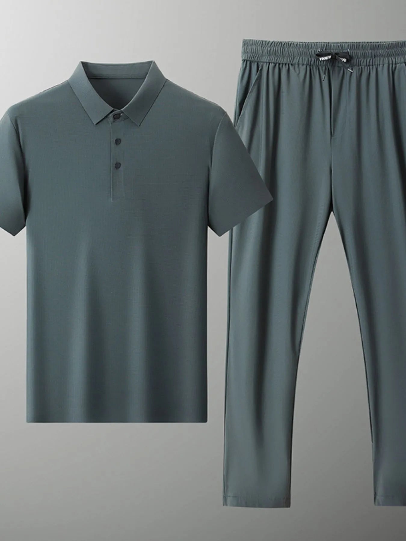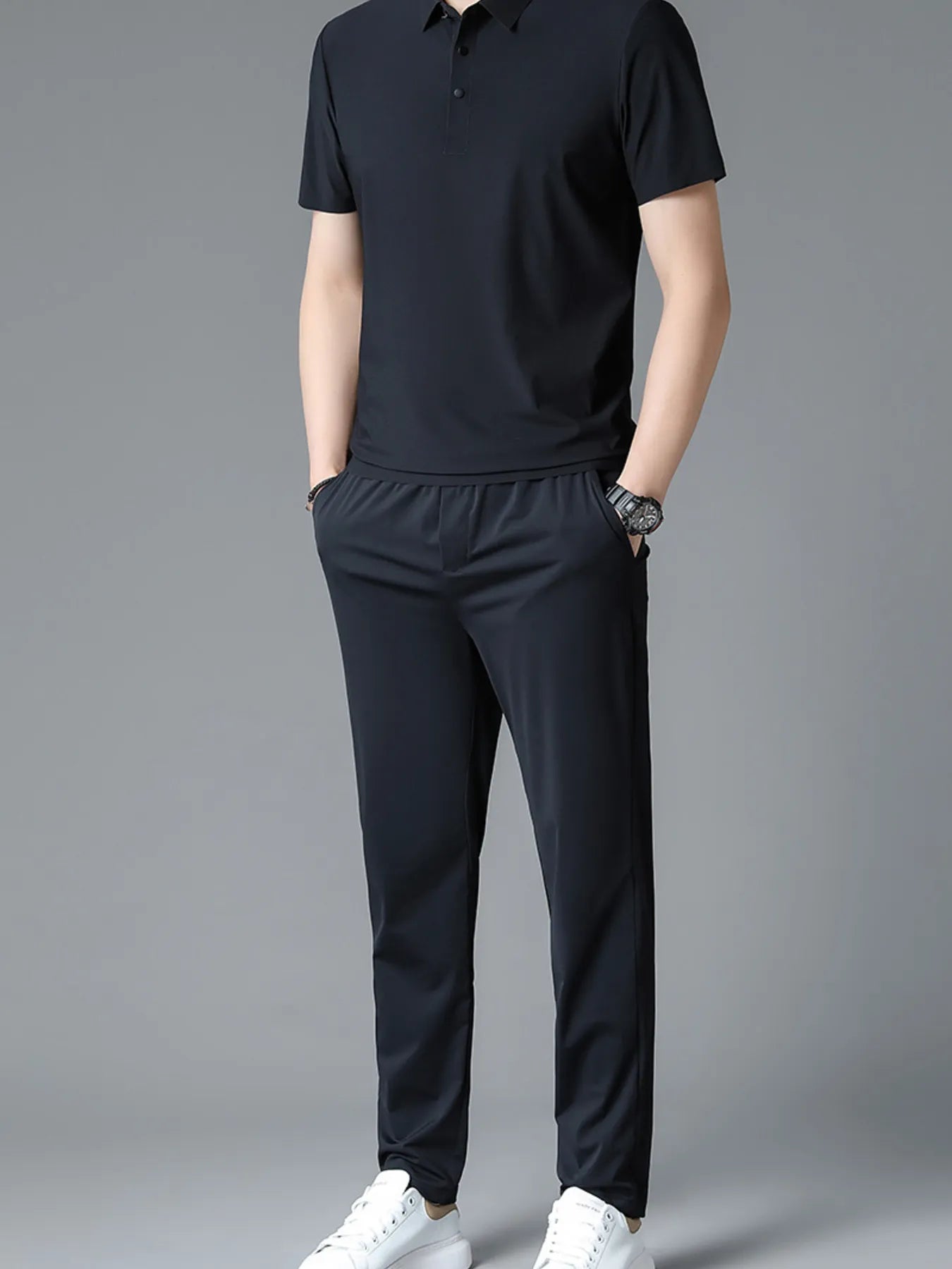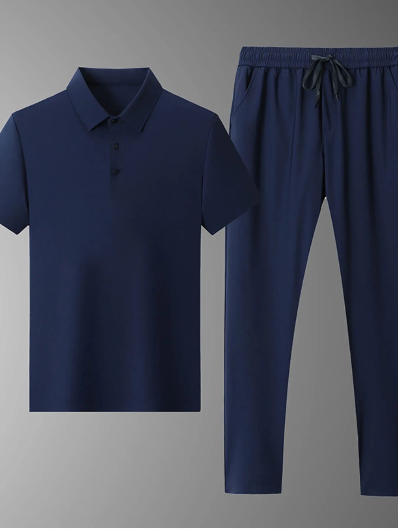 Men's Full Size Button Detail Short Sleeve Polo Plus Size