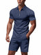 Men's Full Size Classic Plaid Collar Polo and Shorts Set Plus Size