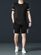 Men's Full Size Quarter Zip Short Sleeve Polo and Pants Set Plus Size