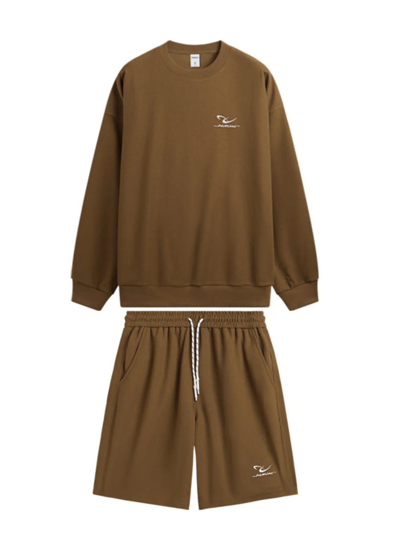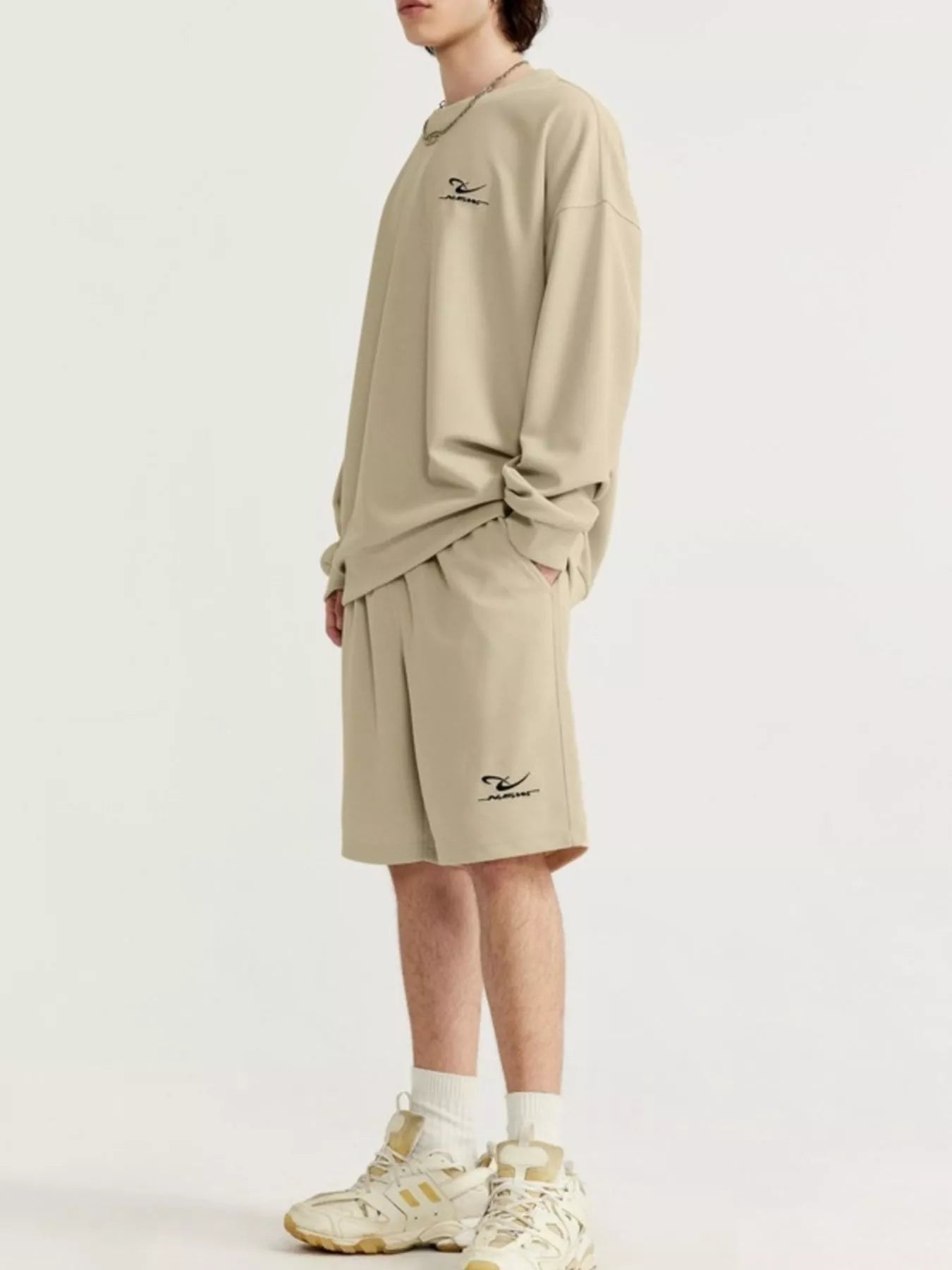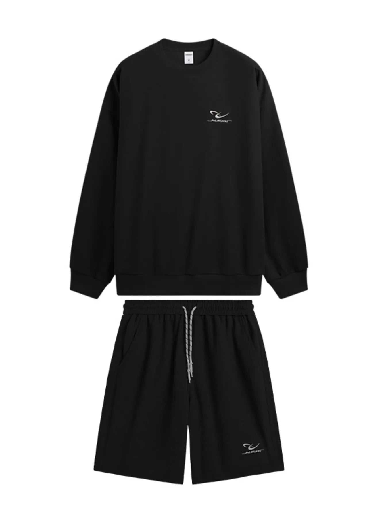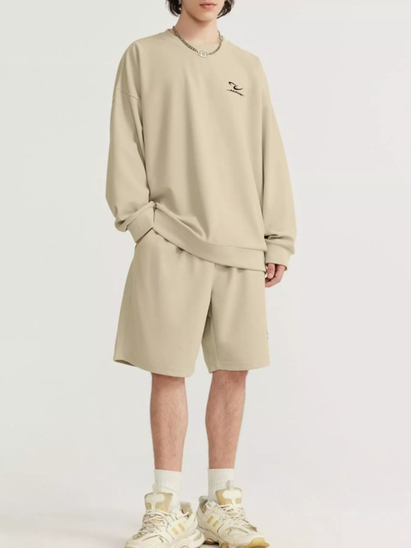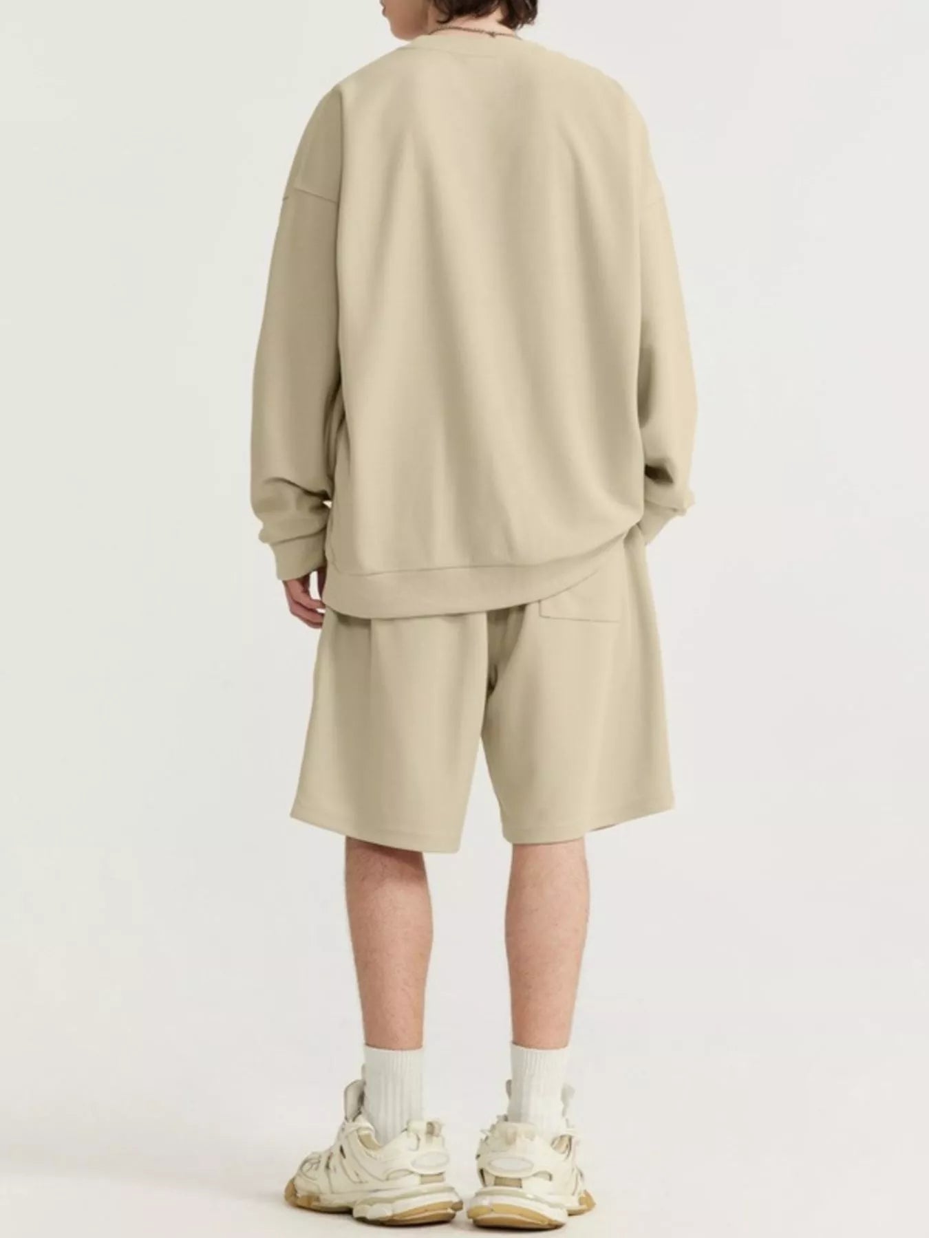 Men's Round Neck Long Sleeve Top and Shorts Set