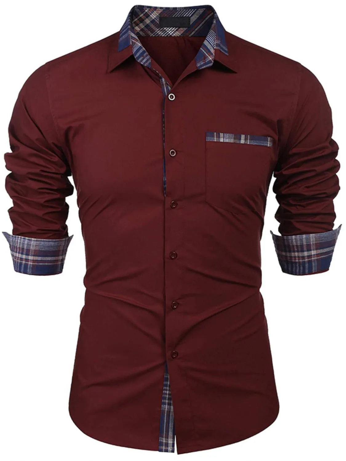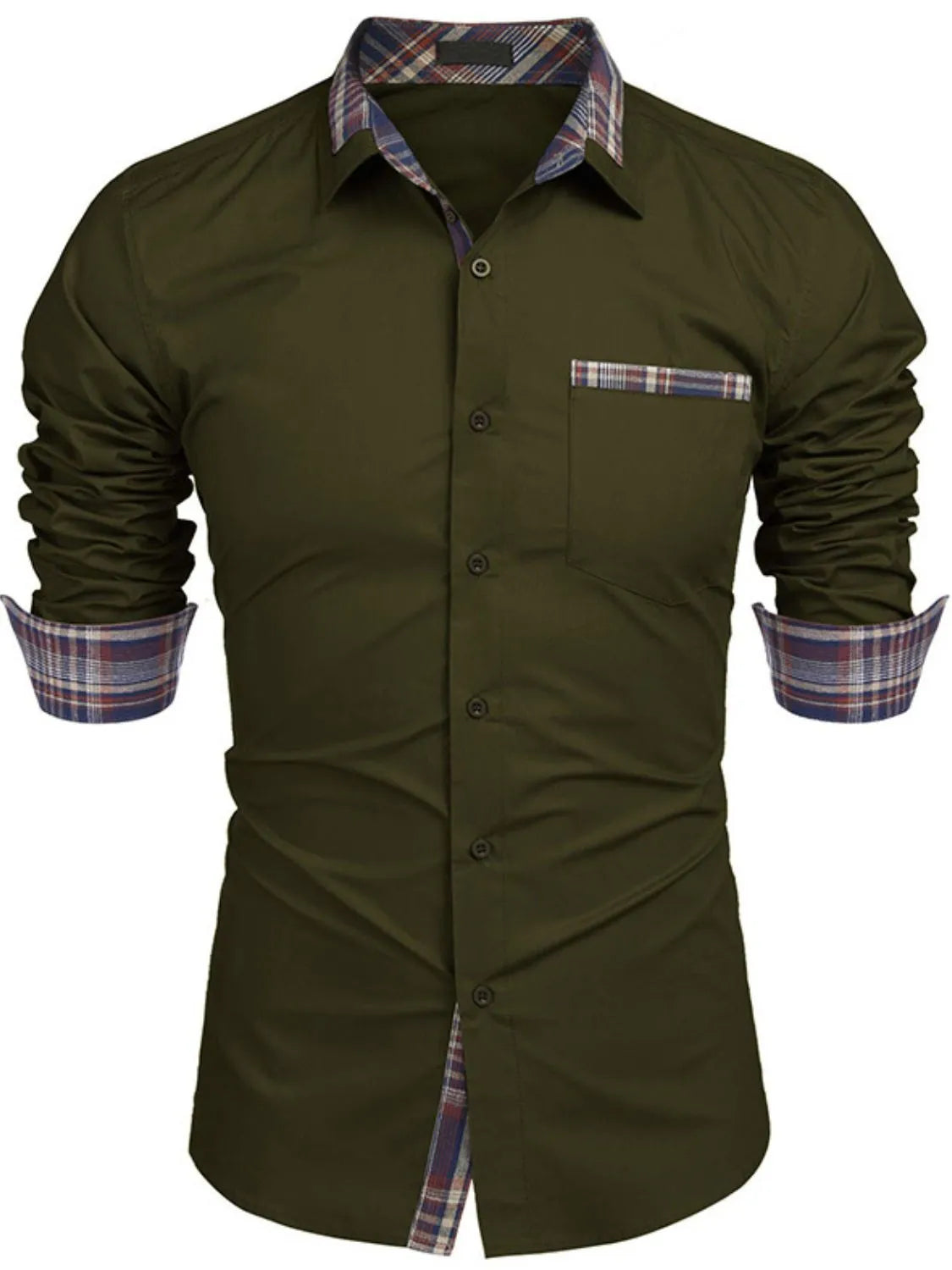 Men's Plaid Collared Neck Long Sleeve Shirt