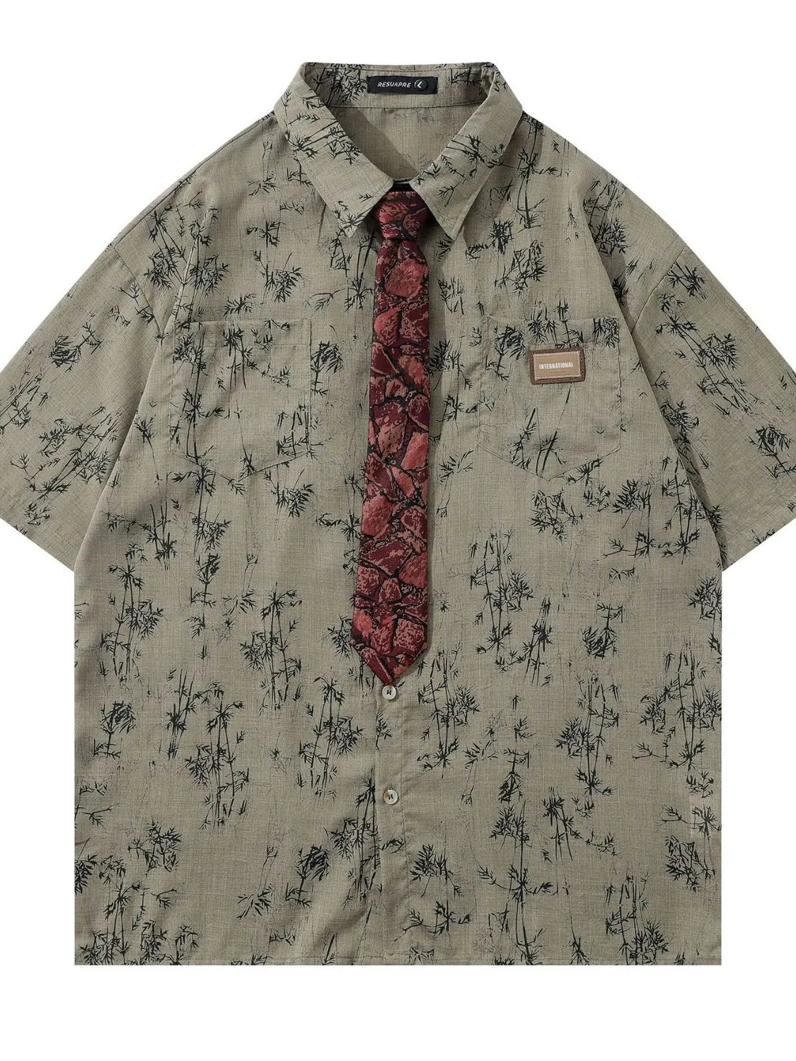 Men's Printed Short Sleeve Shirt with Paisley Tie