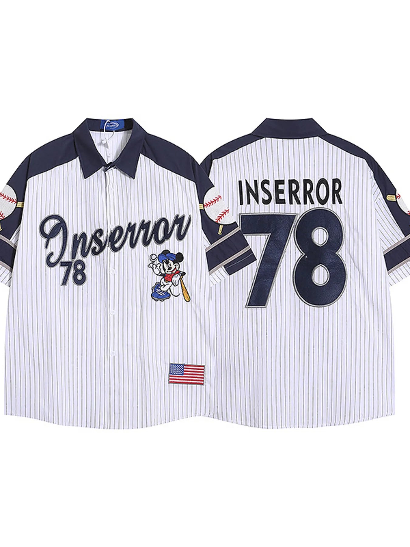Men's Retro Baseball Style Short Sleeve Button-Up Shirt