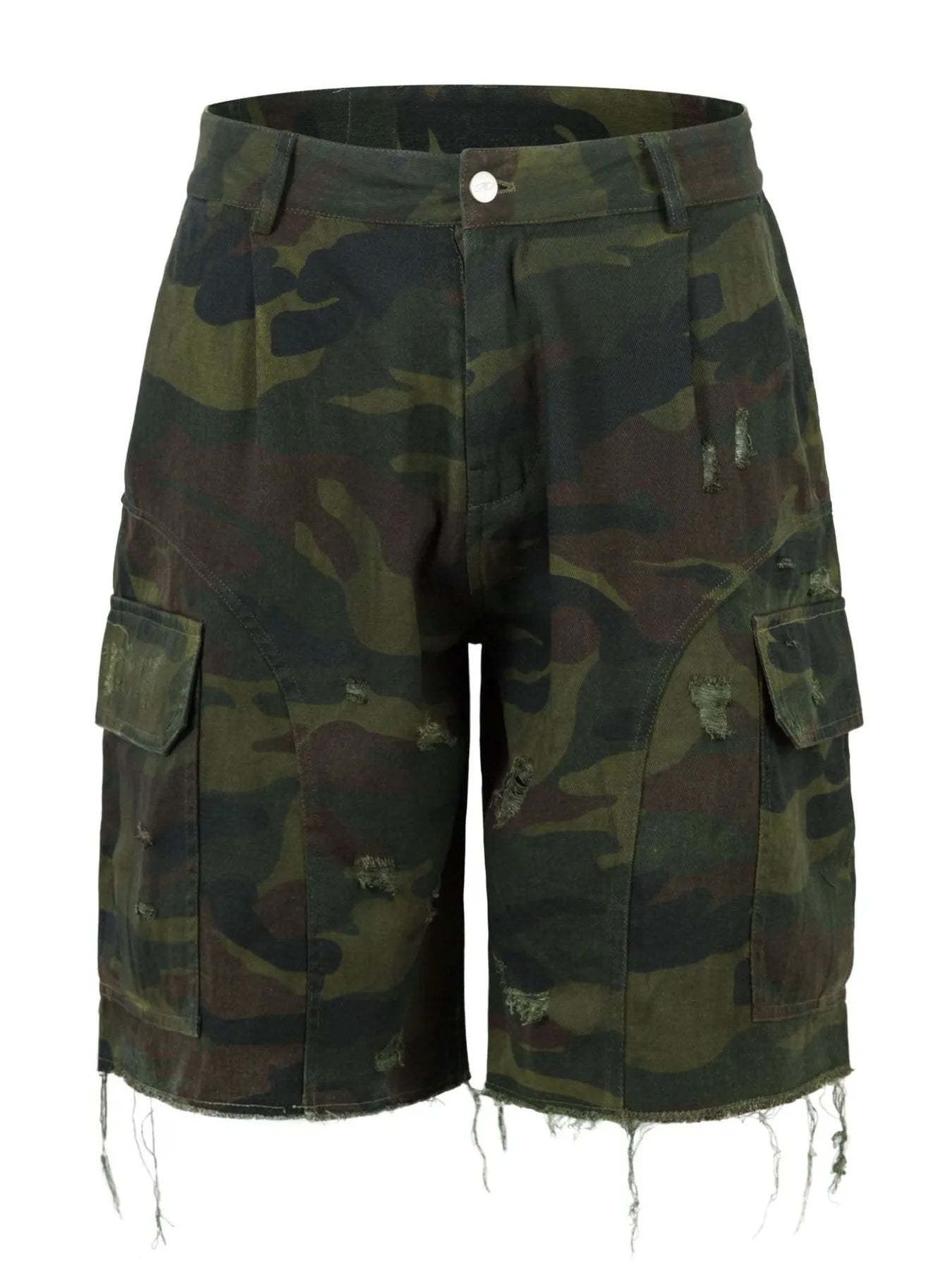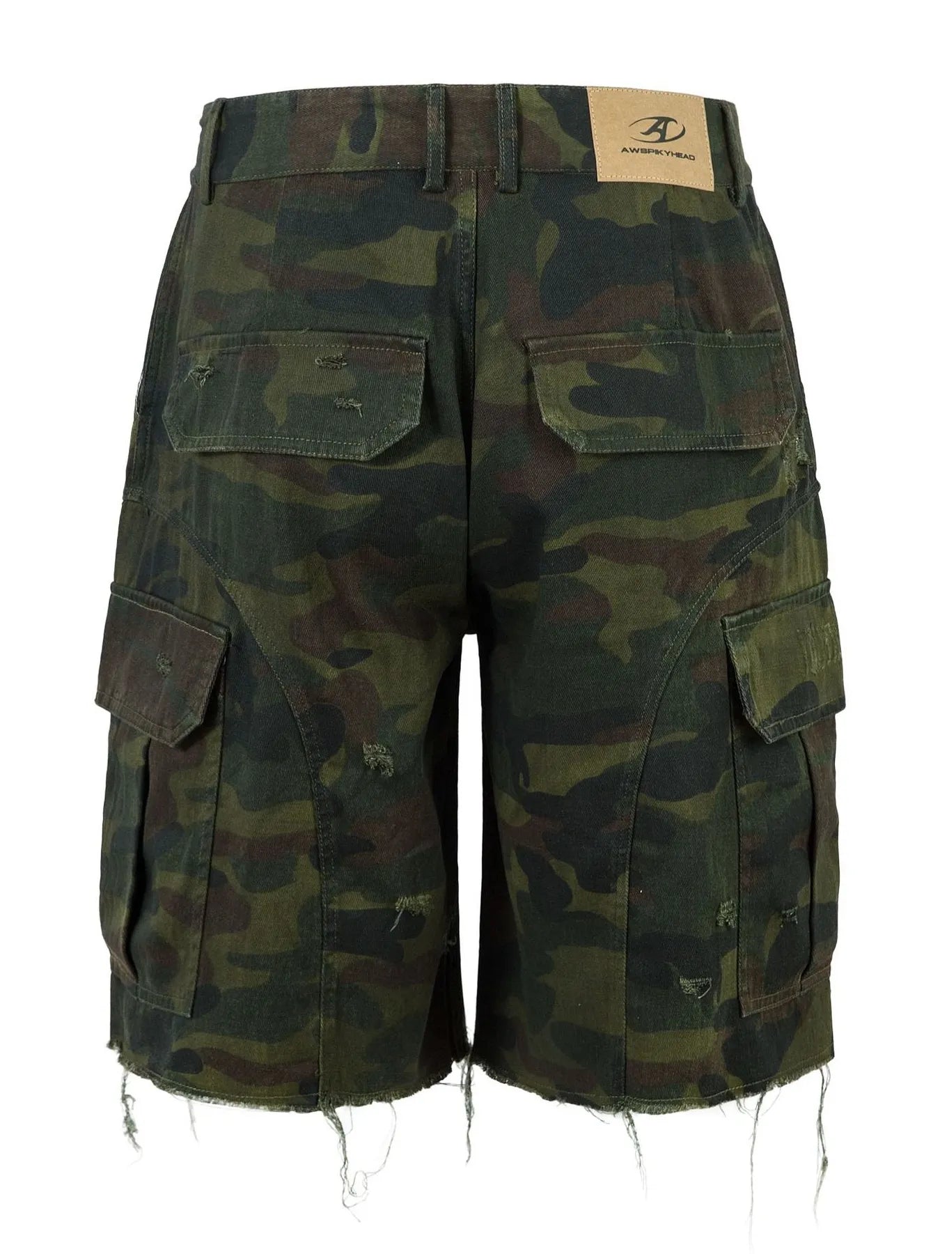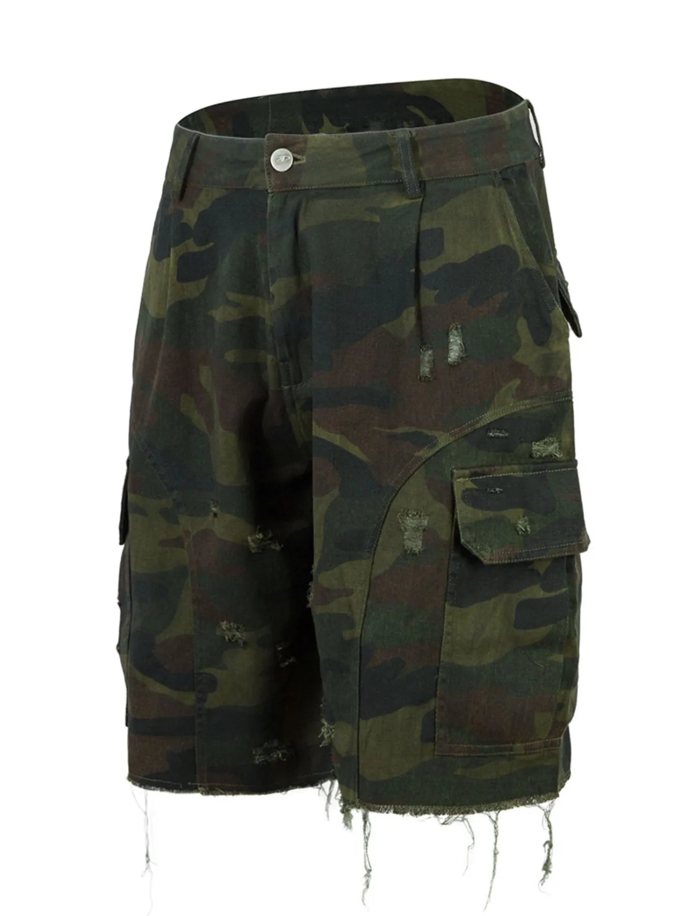 Men's Camouflage Cargo Shorts with Frayed Hem